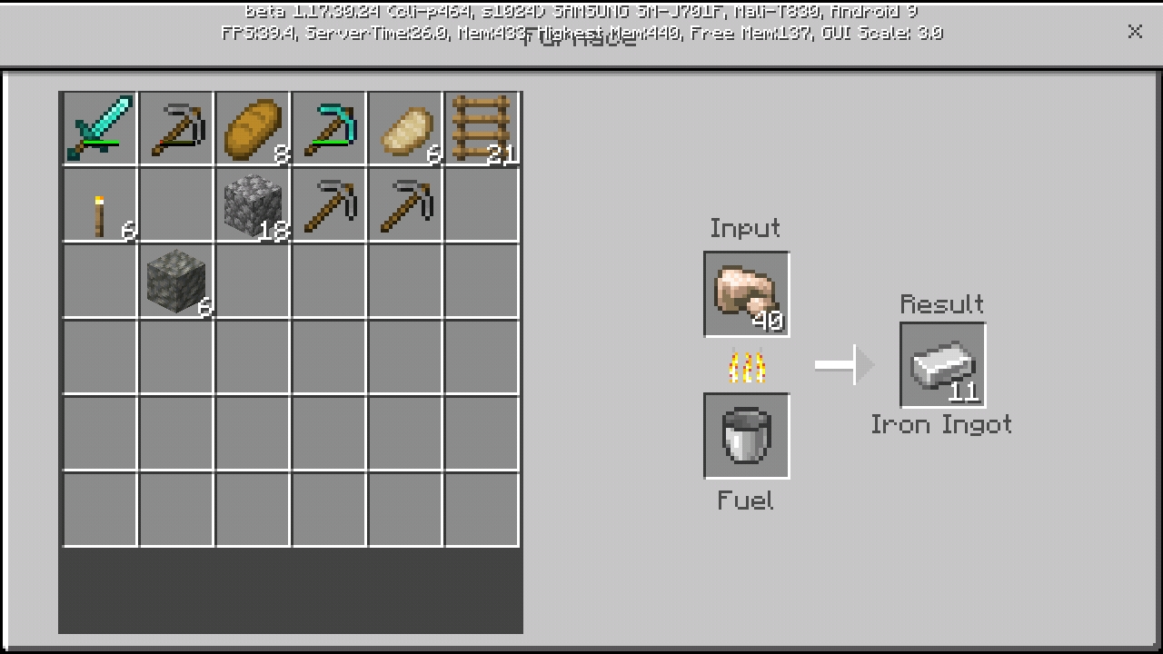 Screenshots as requested. Both sets show smelting in a furnace using lava as fuel.