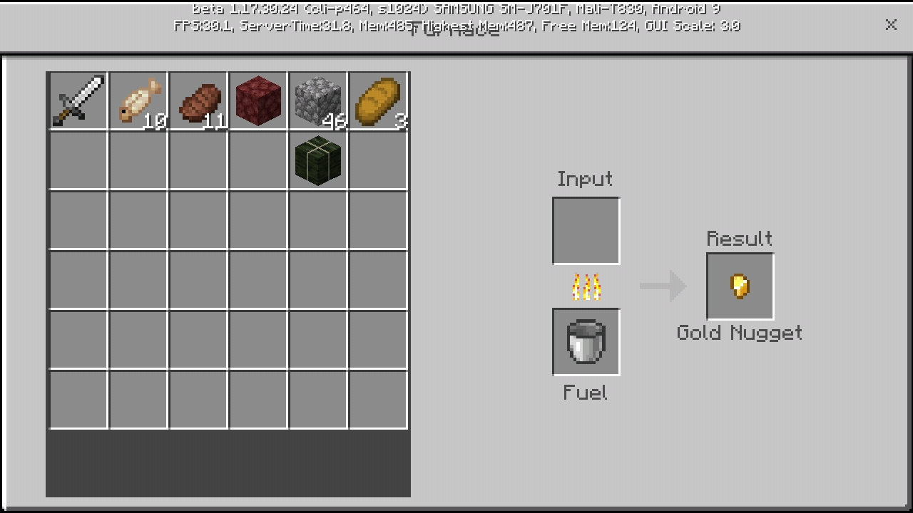 Remove fully smelted stack of gold nuggets.