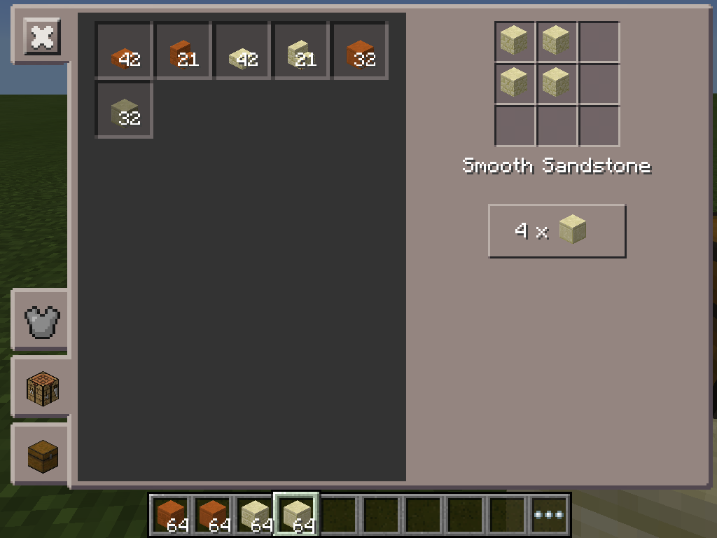 For Example You Crafted all Your Sandstone into Red or Normal Chiseled or Smooth sandstone, the materials that red or normal sandstone is still available, Even if you only have either Red or Normal Smooth Sandstone & Chiseled sandstone, WEIRD ....