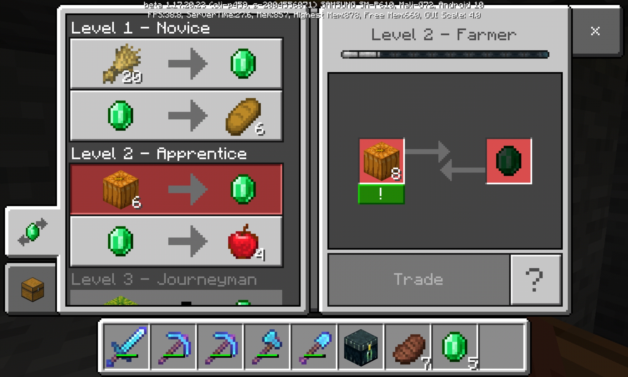 So, in the screenshot it shows that I have 8 pumpkins and the villager needs 6, but when I put the 8 pumpkins in the trading slot it says that the trader does not want that trade.