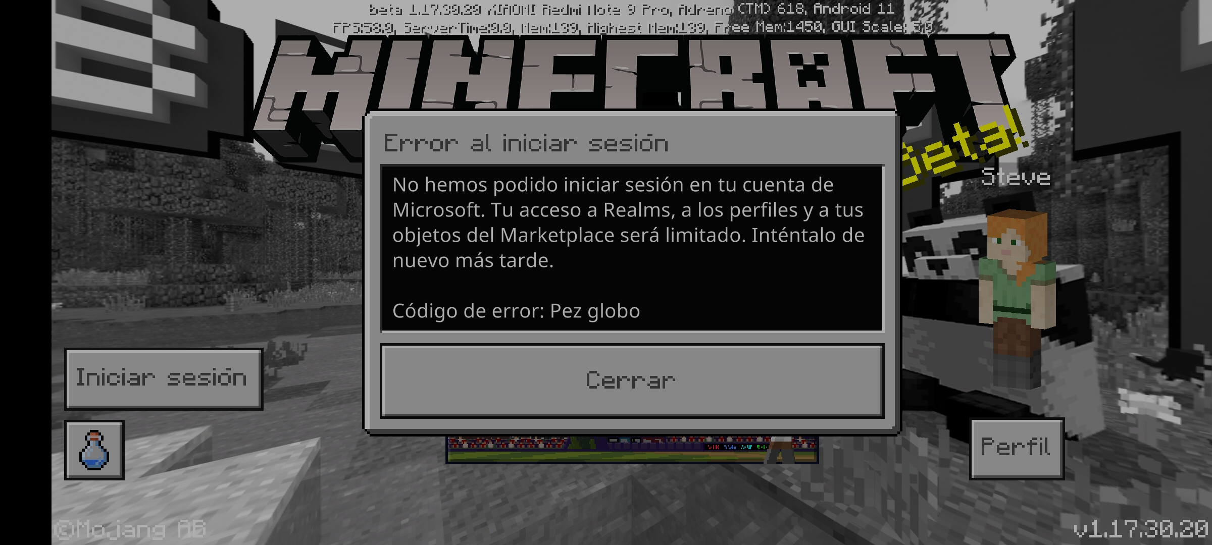 When I re-enter to play, the session does not appear started and when I try to re-enter it throws me the error code: puffer fish and the other problem is that it does not read the worlds, it does not allow creating a new one by skipping the message of: a problem has occurred when loading this world. and it also does not allow loading resulting in failed loading.