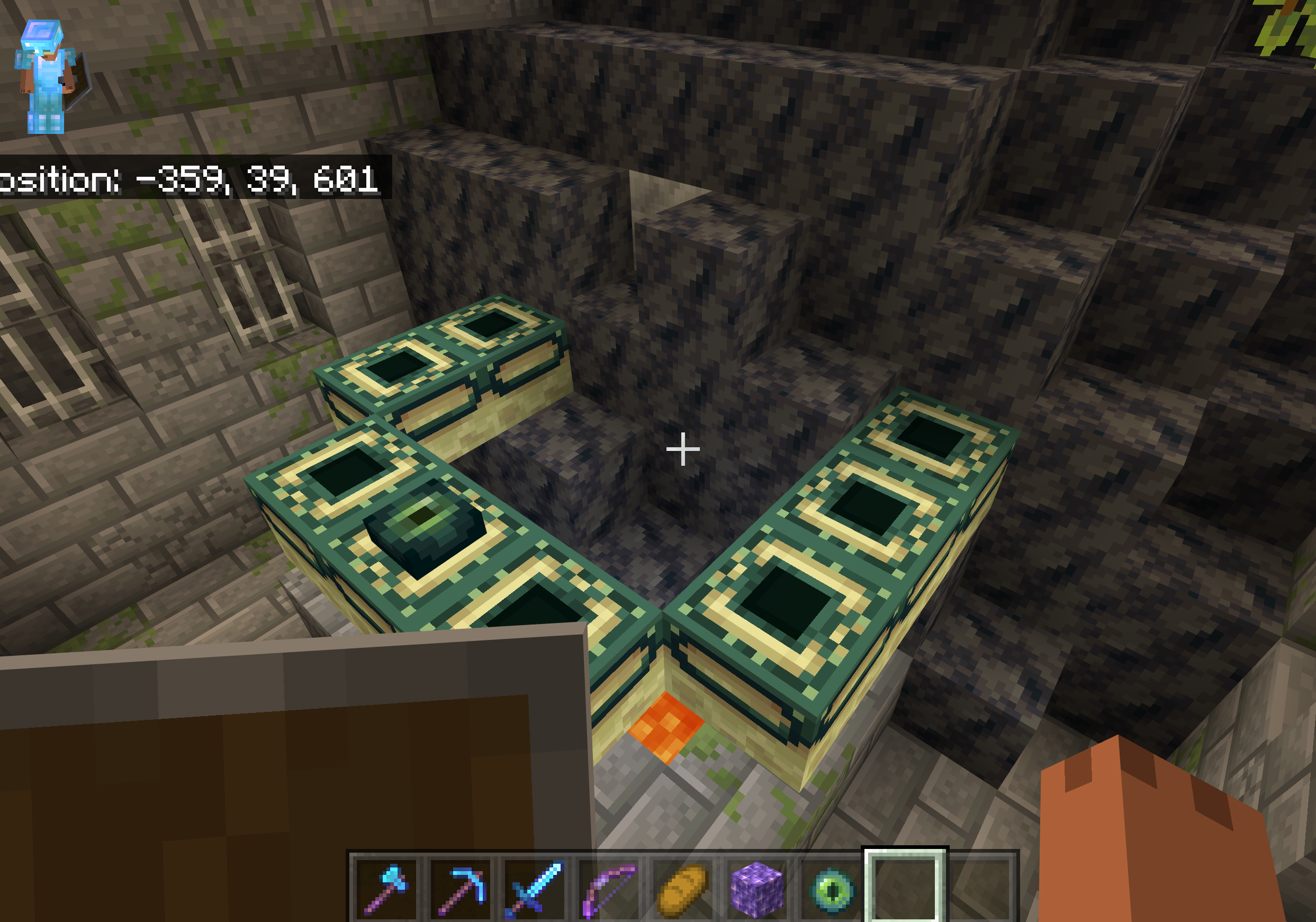 So I was in my Minecraft world ready to get into the end and finally slay the ender dragon but it was very difficult to find the End portal. And so I went and started mining around the stronghold to see where the Portal room and found a geode while mining through one of the walls and so I decided to follow the lines of mossy cobblestone and mined down. Good news, i found the portal room, Bad news, the geode i found earlier intercepted the end portal leaving it with only 8 of the 12 frames still in tact. I was very disappointed to have been searching the whole stronghold for a straight hour to find this disappointment. I'm hoping this bug can get fixed so I nor anyone else has to experience this in their Minecraft world again.