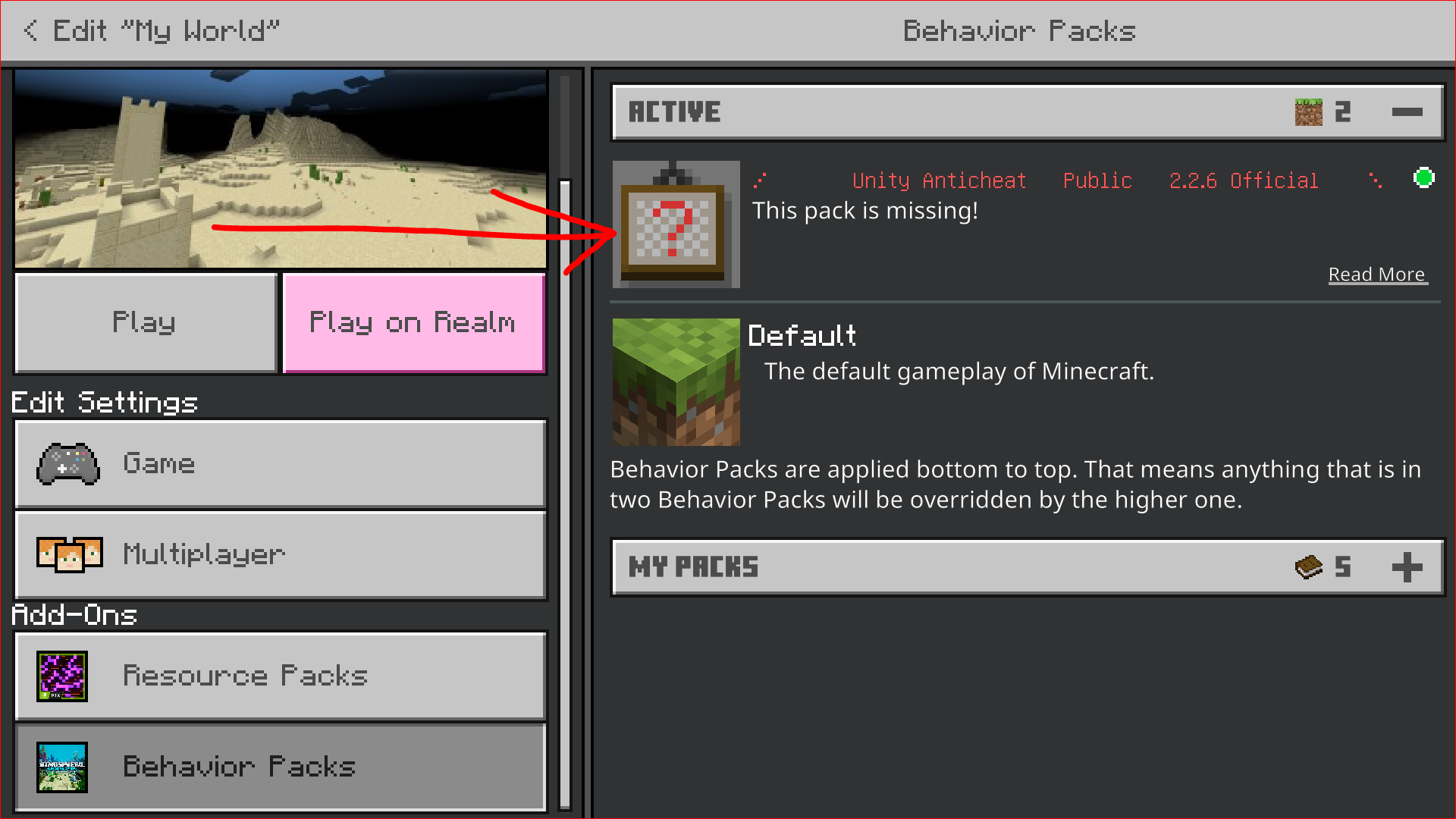 I always have to reinstall this addon/behavior pack after I leave the world or just refresh Minecraft by closing it. You can find a picture below of what I'm talking about. Please comment below if you do not understand