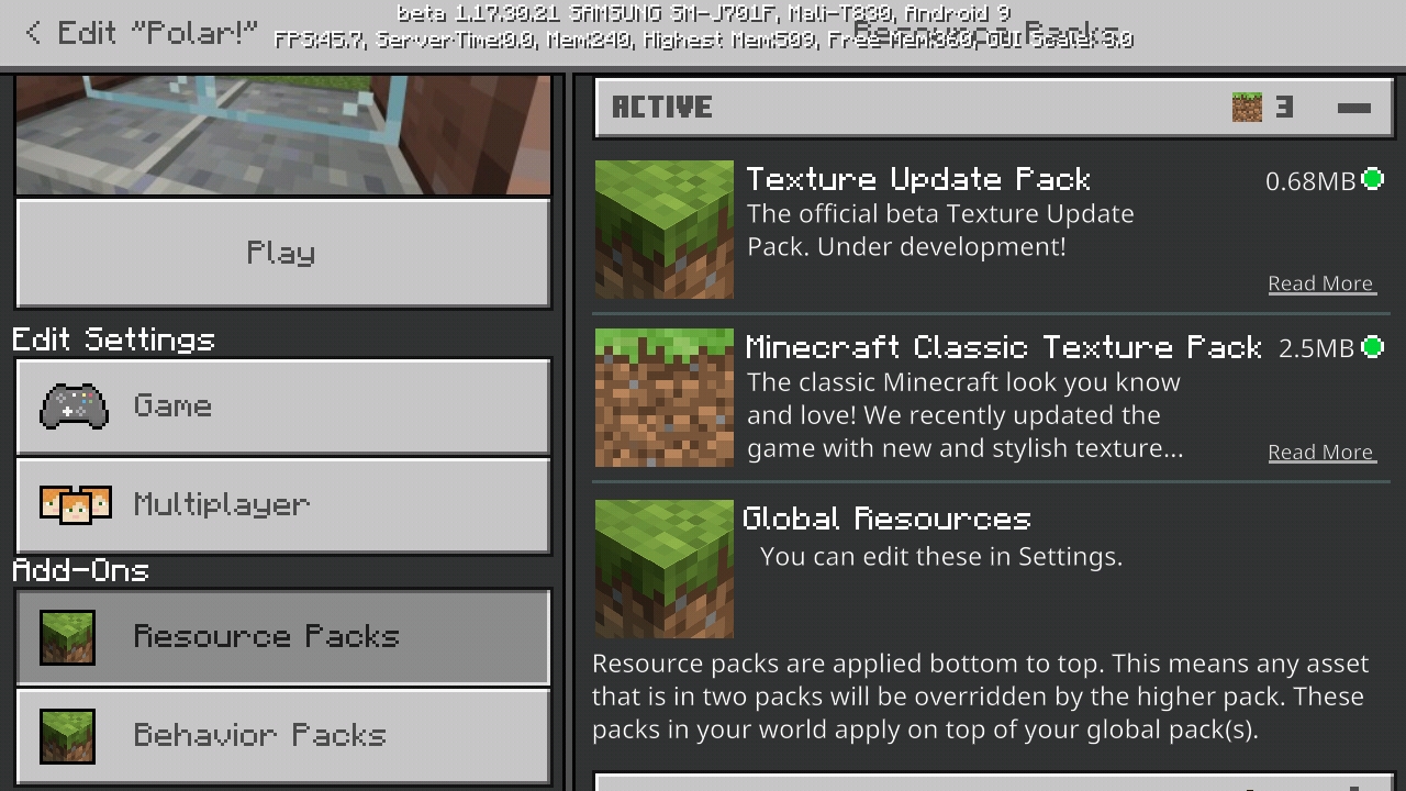 I didn't play with either setup for very long as I was concerned that both packs were being applied sequentially and result in a drain on my phone memory sufficient to crash the game.