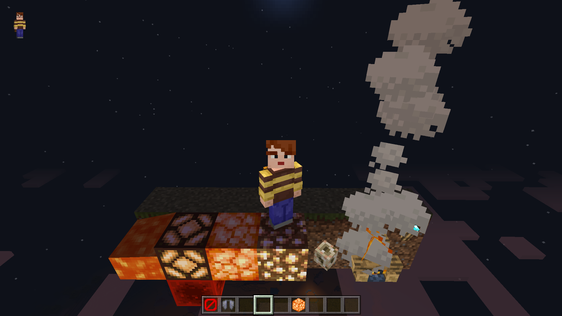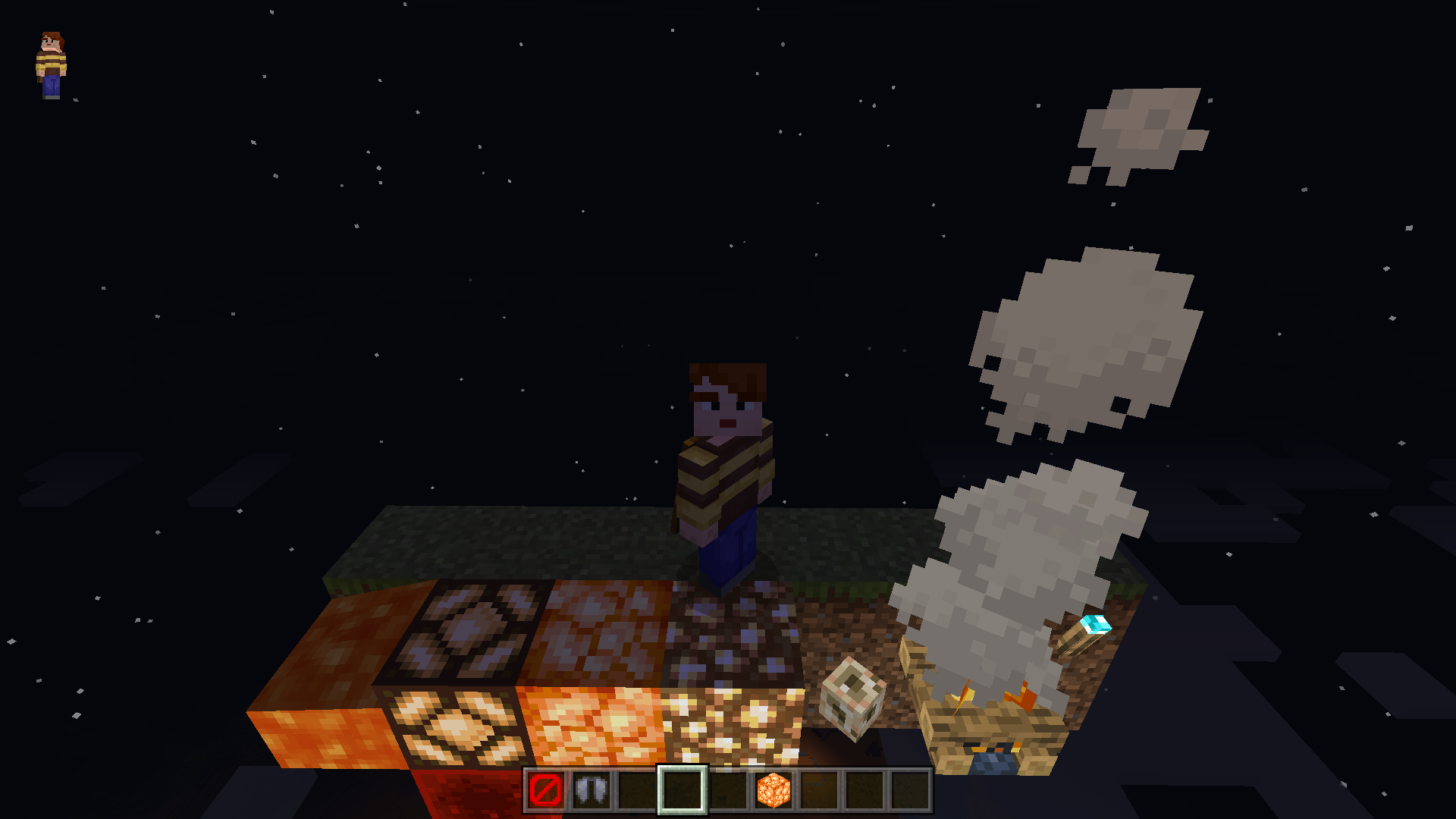 Also, the player will glow only on light emitting blocks and over air containing light (but only at 257/231 heights).