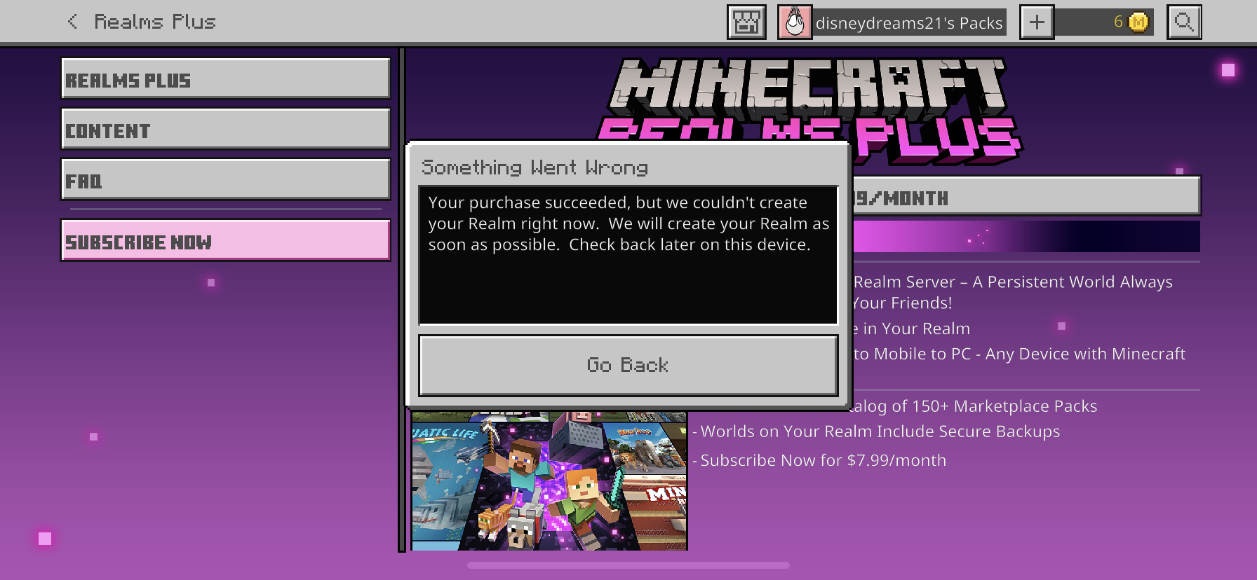I purchased Mc Realms so i could use the maps on the marketplace on my ipad and iphone. I was charged and it says i have realms, but it can't finish up apparently and i cant access any of the maps even though i was charged and paid the 8 bucks to play the maps. It keeps saying it'll set up realms later but every time i check later it doesn't. It's already been a week or two now and i still can't get in and i don't want my money wasted.