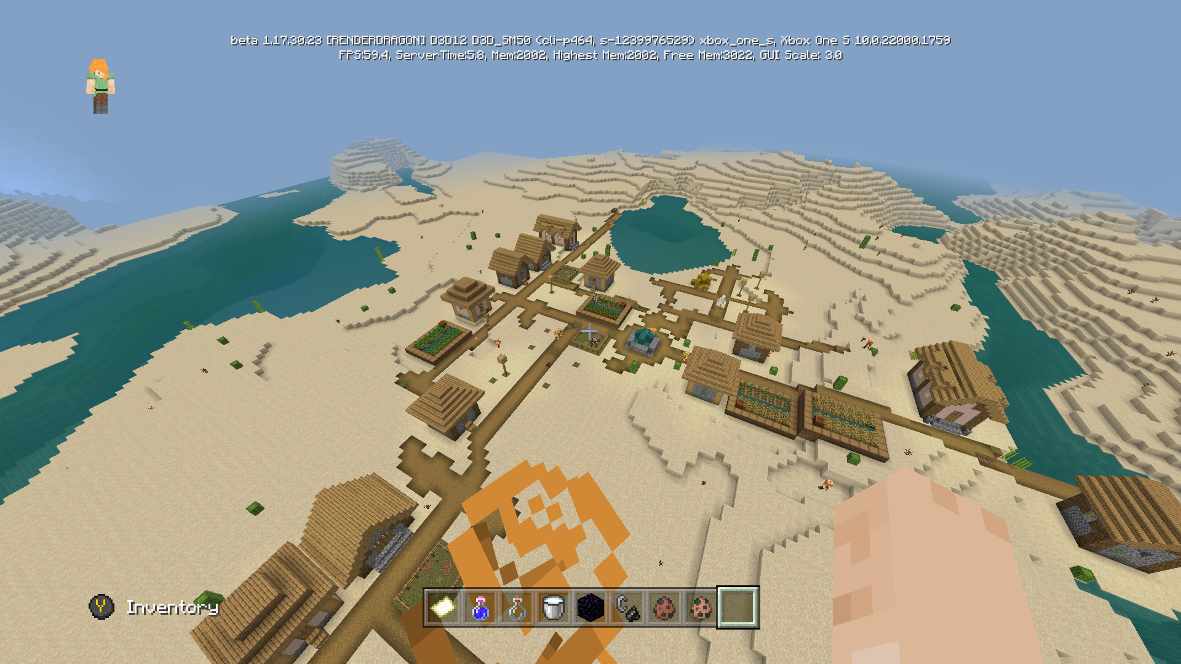 In the pictures, you will observe a plains village spawned on only sand, and a mixture of extreme hills, mesa, and savanna biome.
