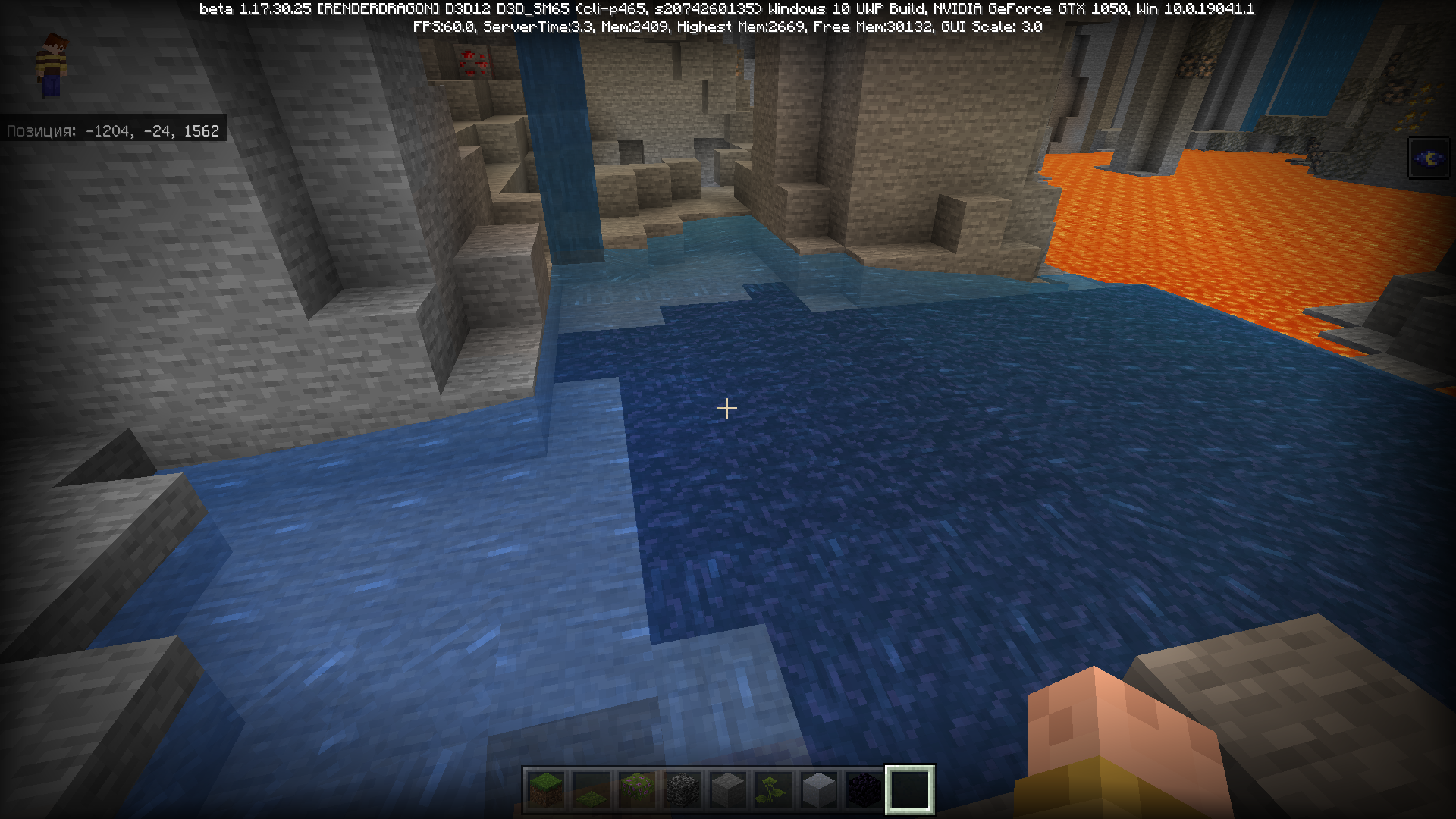 On the lava lake, a mini-lake was generated from regular water (with full blocks of water).