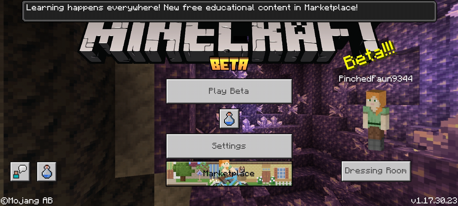 This screen showed up for about ½ of a second the first time I opened Minecraft after updating to 1.17.30.24 from 1.17.11 (I re-entered the beta program).