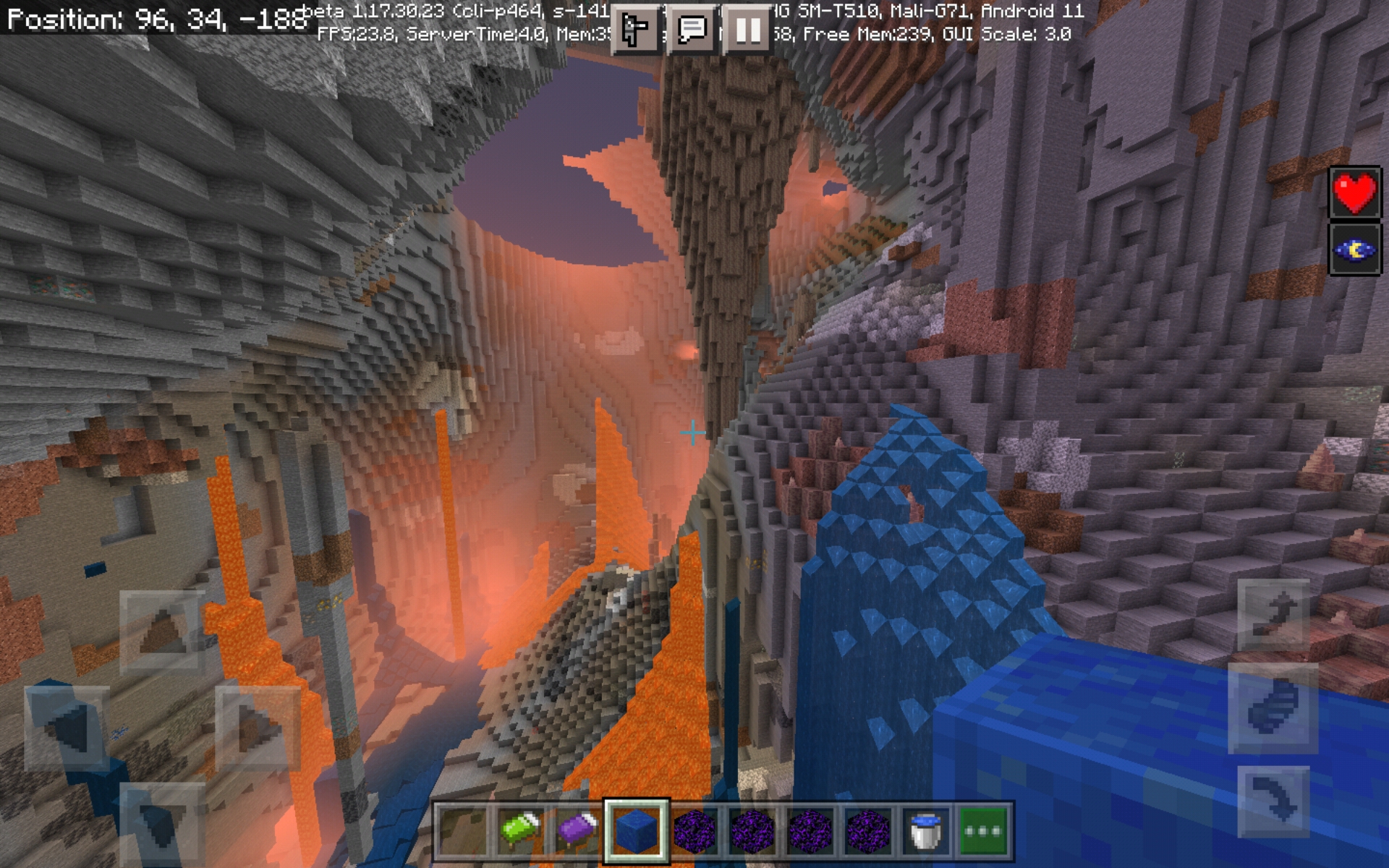 After experiencing bug MCPE-139680, a newly created world is affected by this problem with Cliffs and caves toggle turned on.