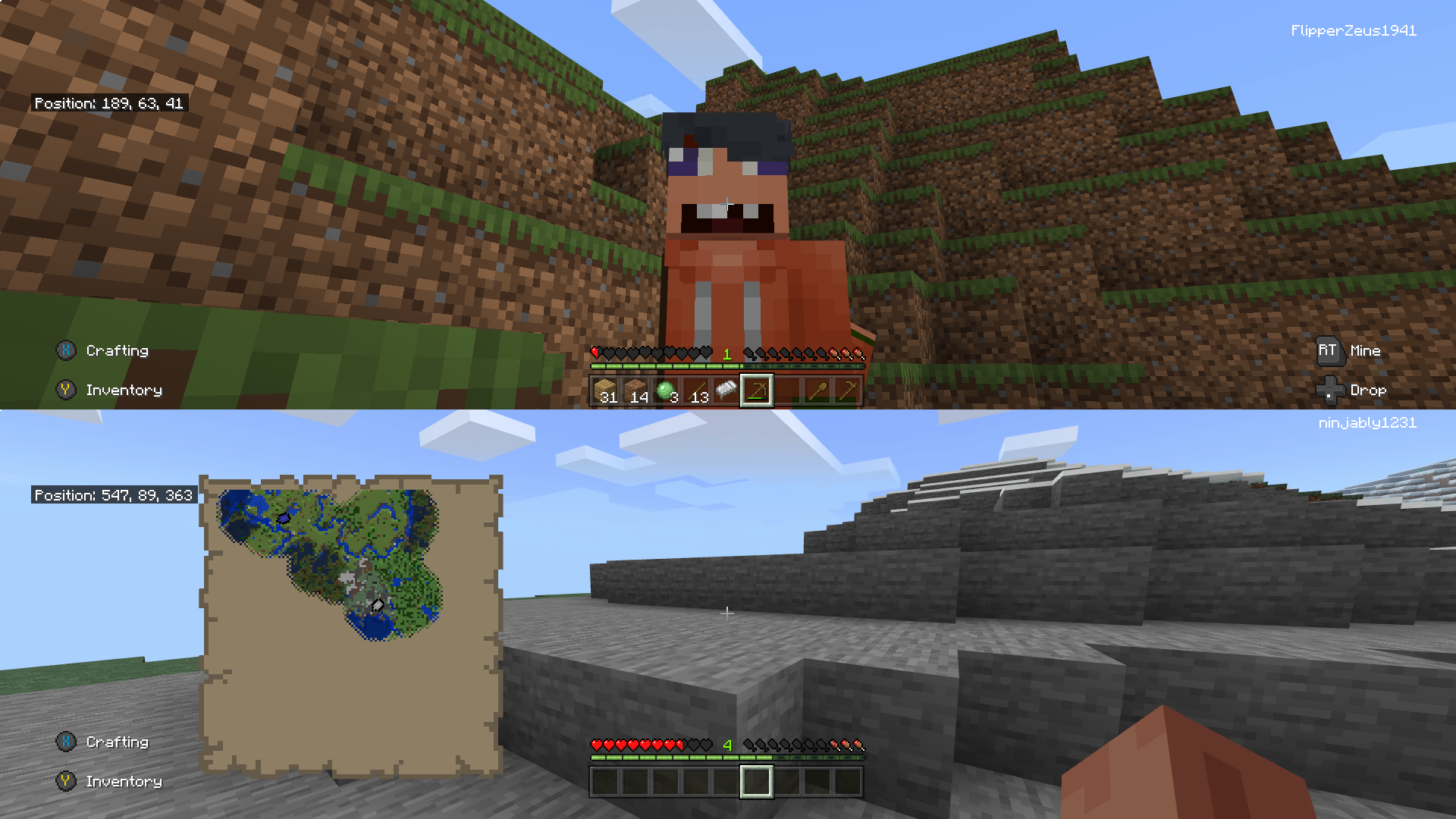 There is this glitch that happens every time we play Minecraft, our characters start missing body parts and the gameplay glitches because of it the screen is hard to see when playing.In addition sometimes the legs and arms go inside the stomach.