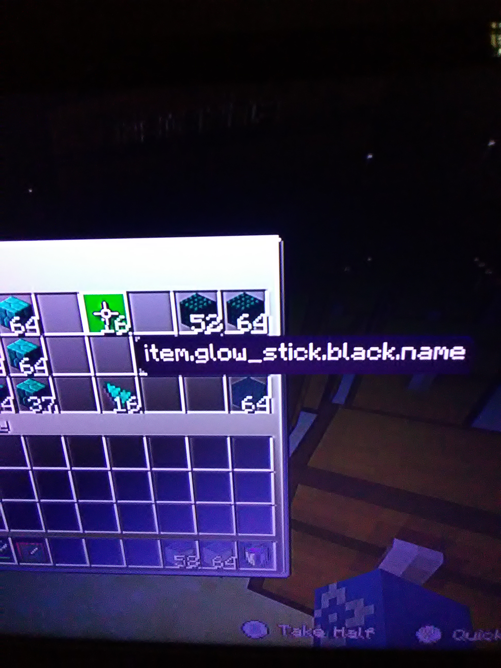 Prismarine crystals are being turned into an item called item.glow_stick.black.name