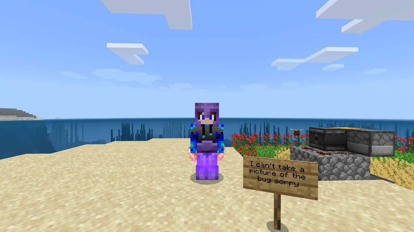 When changing from normal screen to full screen sometimes other block textures appear I would improve it (it is difficult to photograph). Also the skin stays floating and everything else disappears