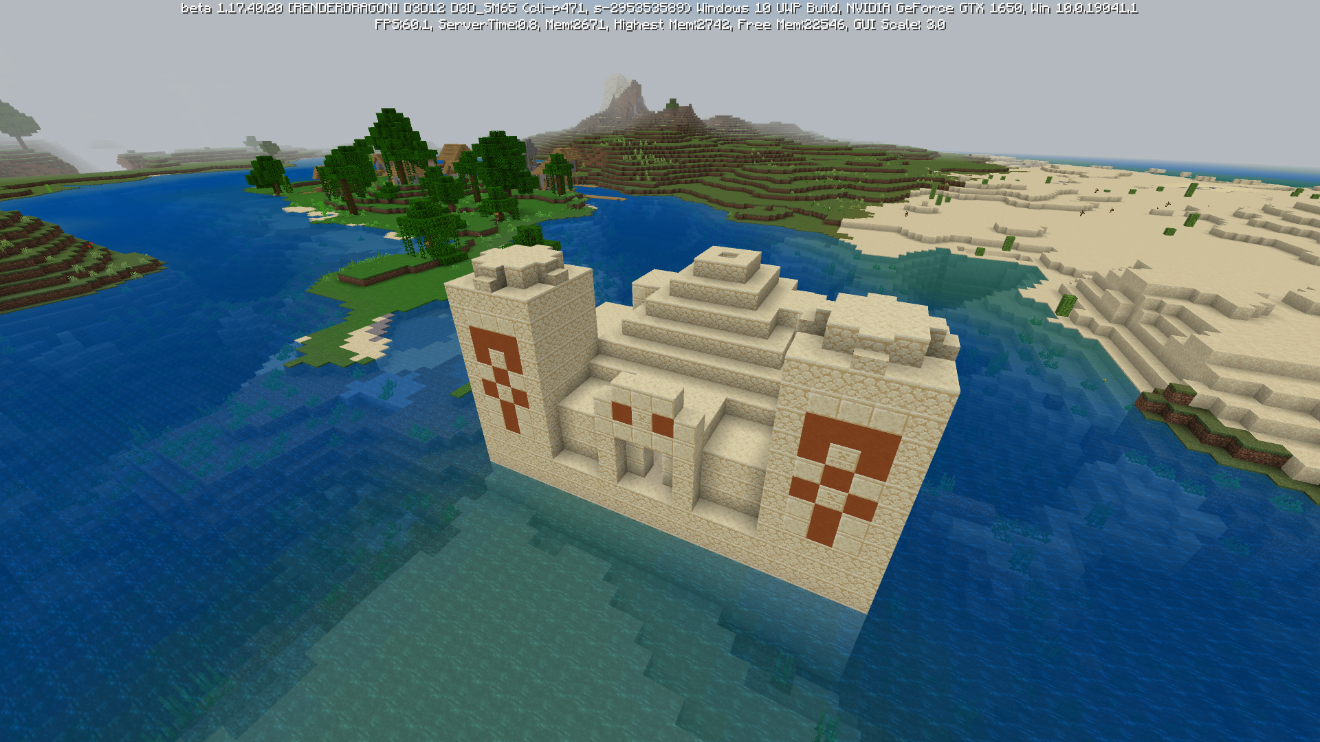 Desert temples can now generate on water, which isn't supposed to happen. This is likely because this bug was carried over from the Experimental Snapshot 3 on Java Edition.