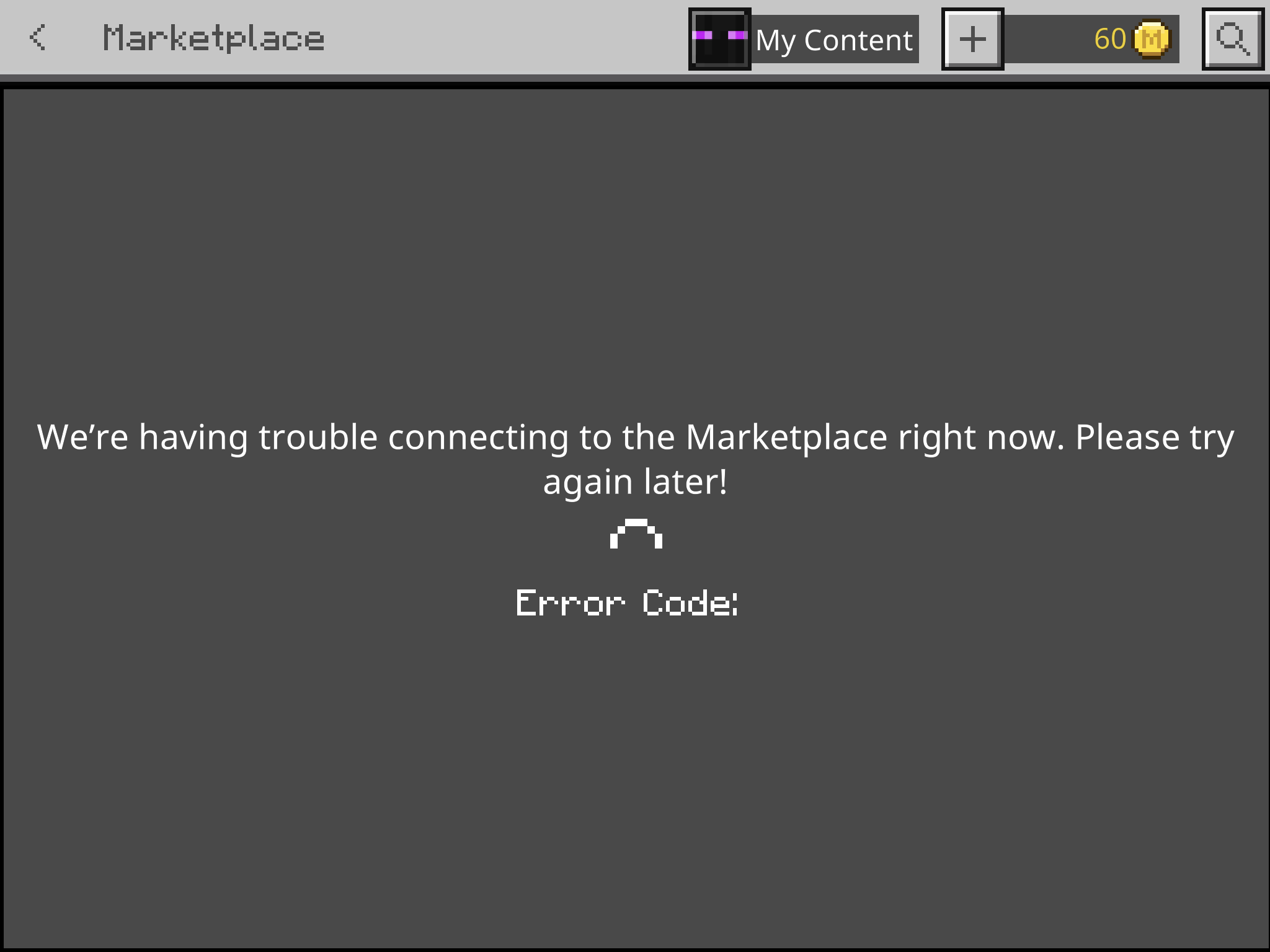 When get in to Minecraft I see there is a new cover for the marketplace so I tap on the marketplace and it proceeds to load constantly. When I select a world in the marketplace it loads for a bit then tells me this "We are unable to connect to the marketplace Error code:" and that's it and it's really annoying and strange because the marketplace in Minecraft has never done this before. I keep seeing really great world names in the marketplace but I can't do anything in the marketplace. And some of its content is loading and some of it is not loading. And this happened just after Minecraft version 1.17 came out and the new 1.17.30 update came out and said that there was over 150 bugs killed so I thought okay I can know go in the marketplace yeah no it's still bugged in the marketplace please fix this problem thank you.