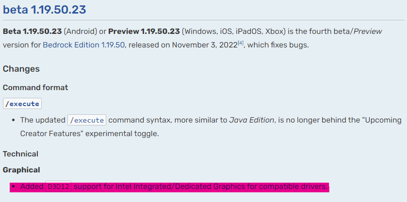 Update (made during 1.20.30): Render dragon for a while has been improved on RTX cards, and now the different DirectX engines can be toggled thankfully. An issue on many servers (and probably any medium resource-intensive scenario) is that I’ve been able to feel very small micro lag performance spikes many times a second. Once again, this did not happen when I used the older rendering engine. Lastly, entities seem to be the culprit of many performance issues as well.
