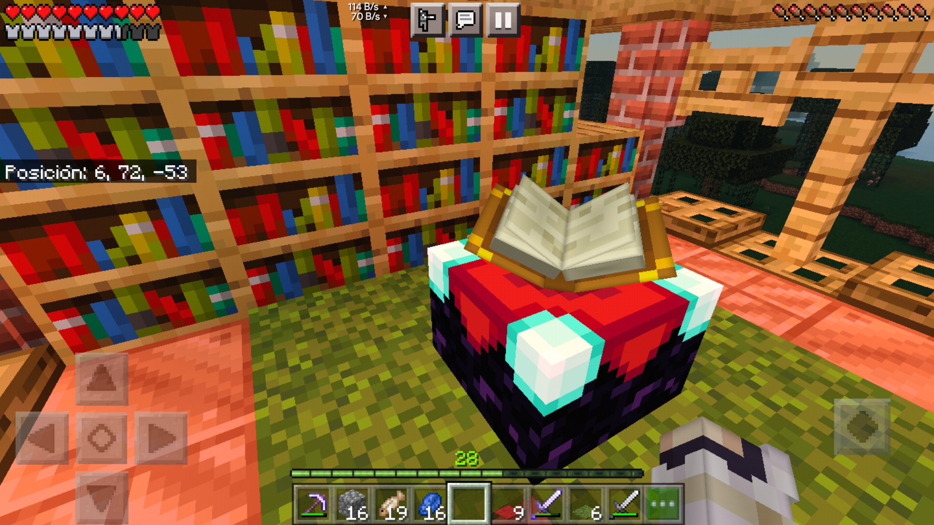 When trying to decorate around my enchantment station, I found that the moss rugs that I placed on the floor were blocking the effect of the bookcases adjacent to the moss rugs. This does not happen with wool rugs, as they do not interfere with the effect of the bookcases on the enchantment table.