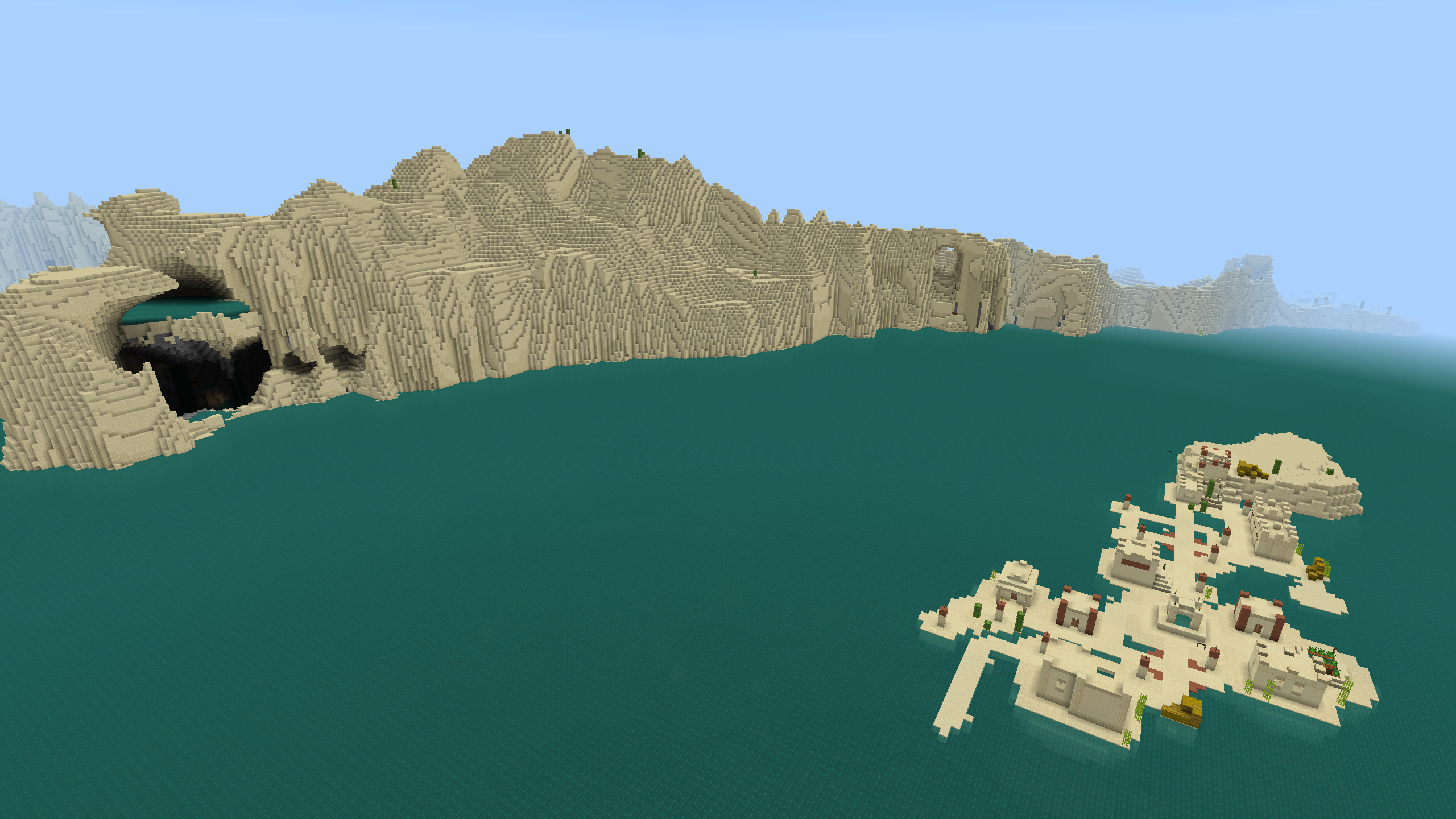 Enabling caves and cliffs experimental gameplay causes the terrain generation to ignore the biome override directive, resulting in ocean worlds having large landmasses and desert worlds to have oceans.