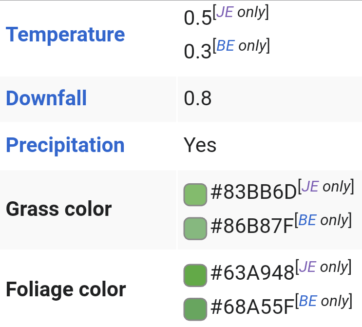 The biome has the same grass color used on windswept hills, taiga biomes and other "cold" biones.
