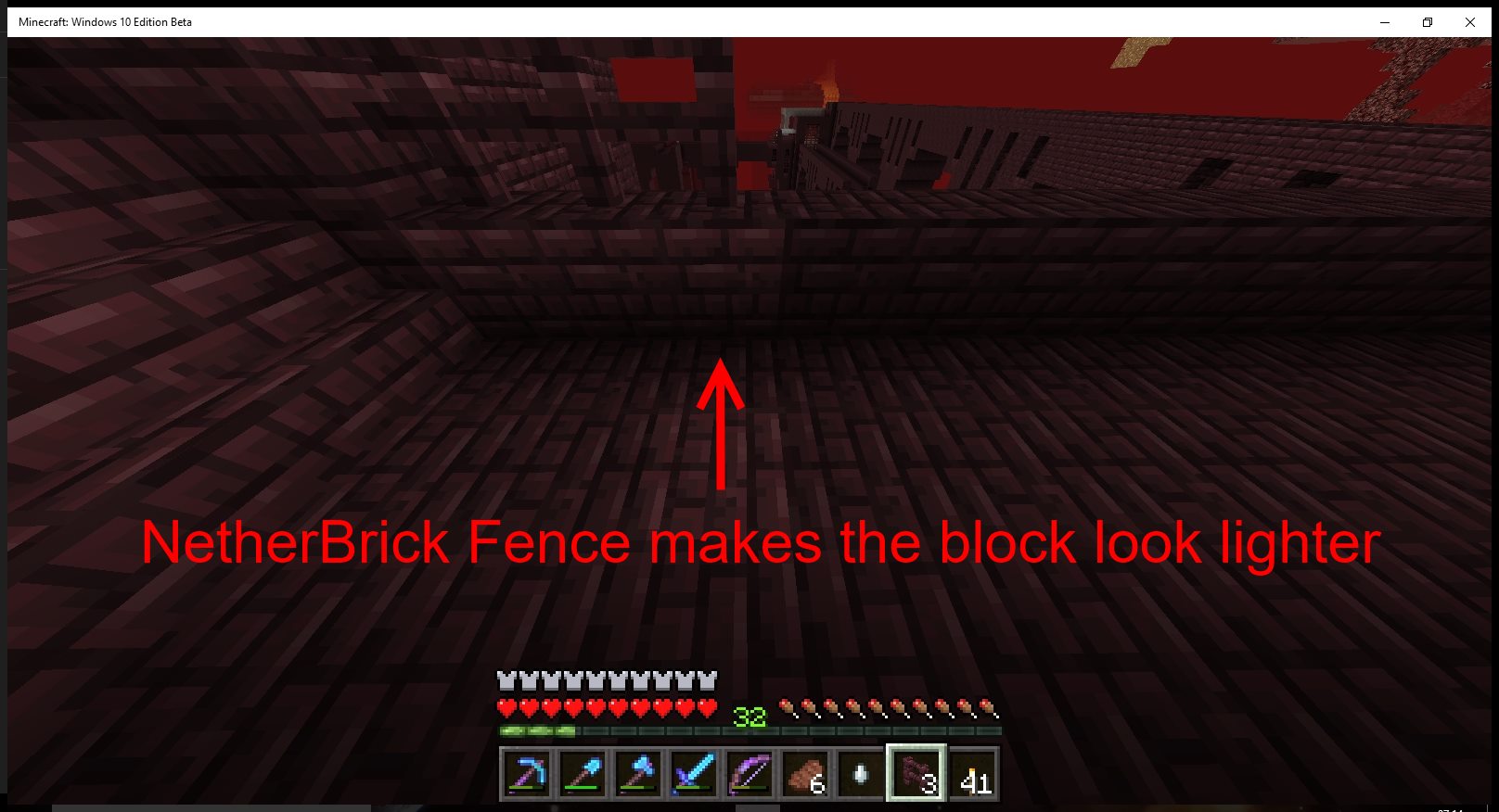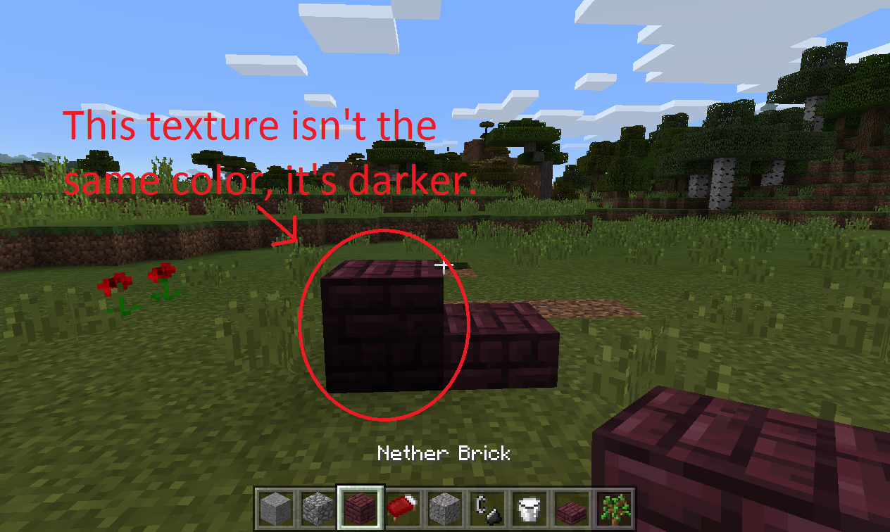 Also, I noticed that placing a netherbrick fence on a netherbrick block, will change the appearance of the netherbrick block, making it look lighter also.