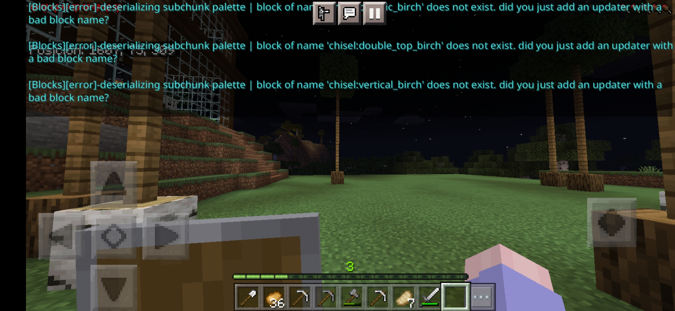 [Blocks][error]-deserializing subchunk palette | block of name 'chisel:diamond_space' does not exist. did you just add an updater with a bad block name?