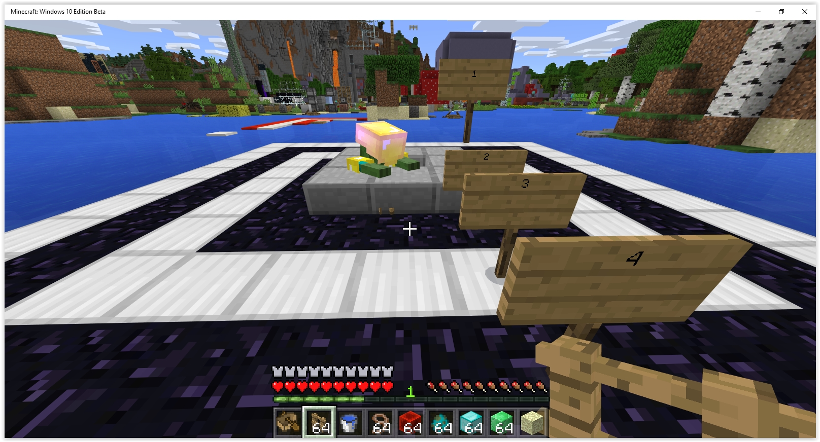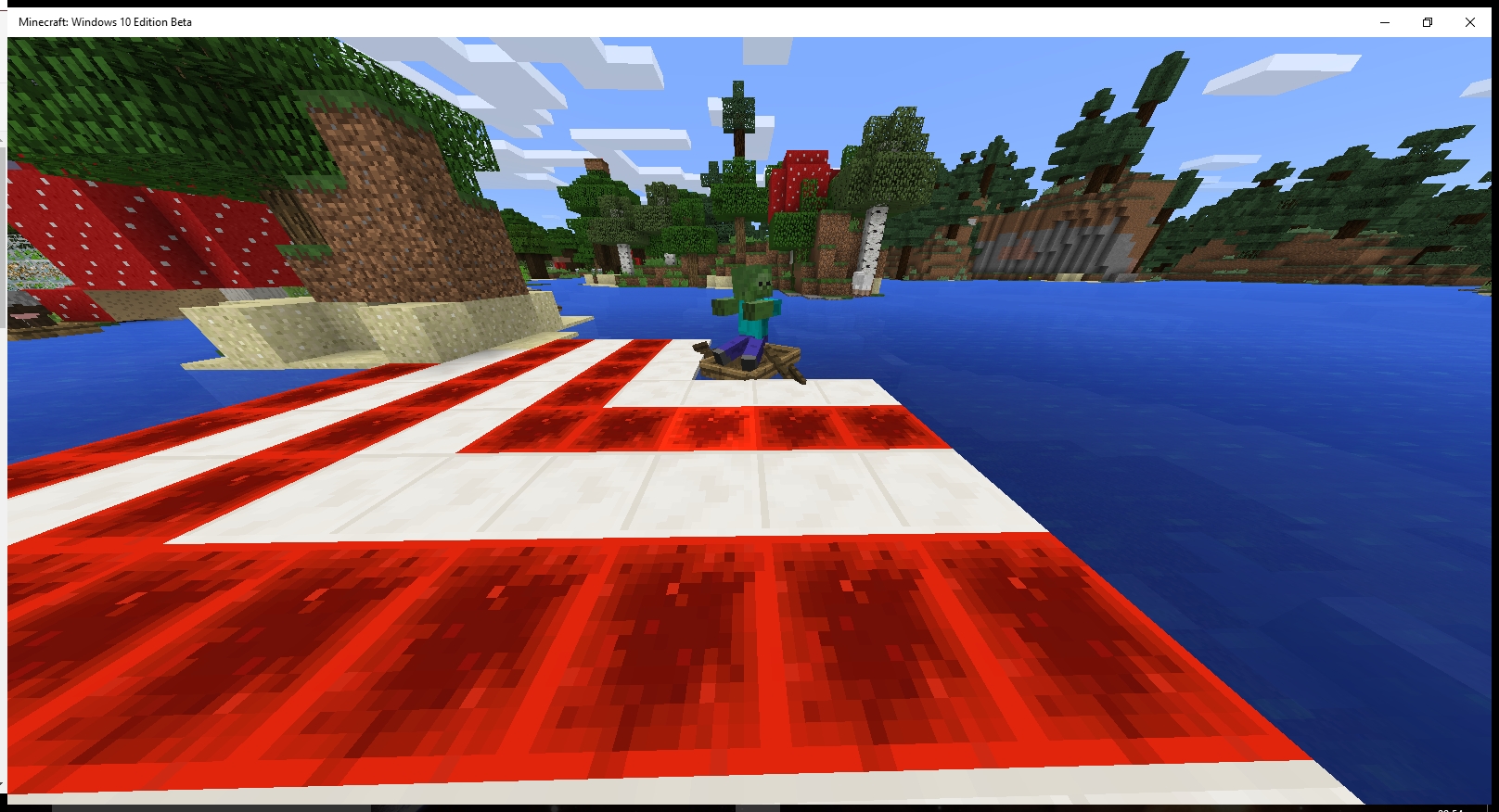 Hostile mobs that usually have a melee hit range of <1 block, are able to hit you from up to 4 blocks away when they are riding in a boat.