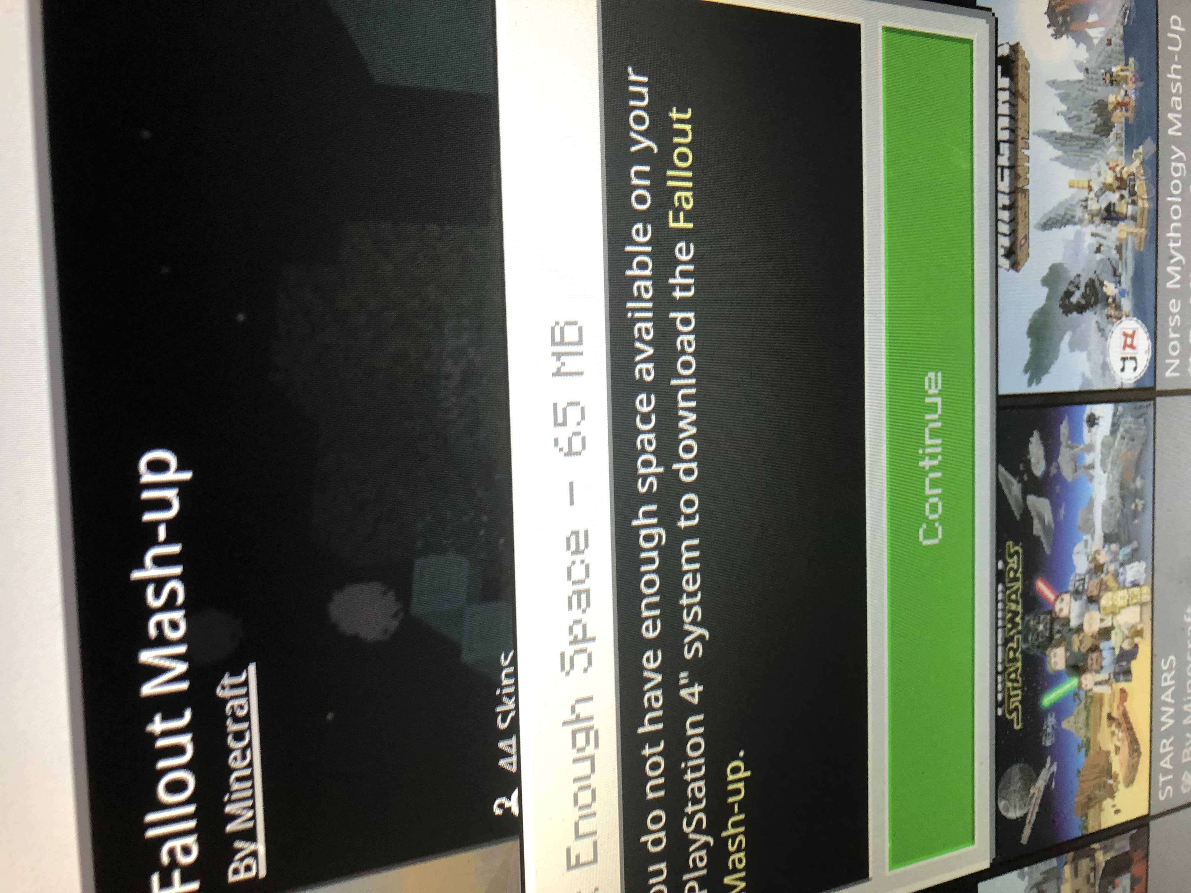 We bought a Minecraft pack: Dragon Fire 2 and he's got only 5 worlds left, no games on PS4 storage, no captures, only 5 saved data and he STILL can't download the pack.