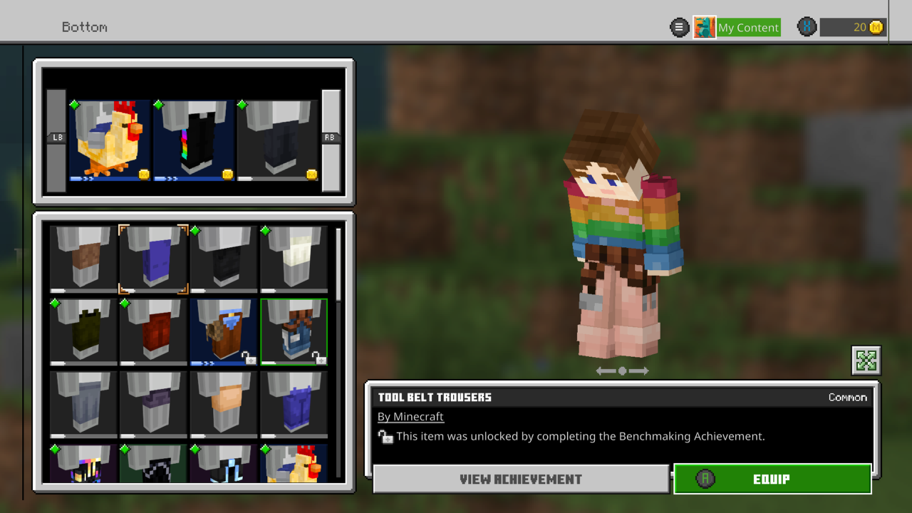 My character, using clothing from xbox achievements, often has the clothing peach colored (for now, it's the pants, boots, and quiver for me), and the pants show up as shorts. Xbox one, 1.17 (not the experimental versions). I'll attach a screenshot later today when I am able to.