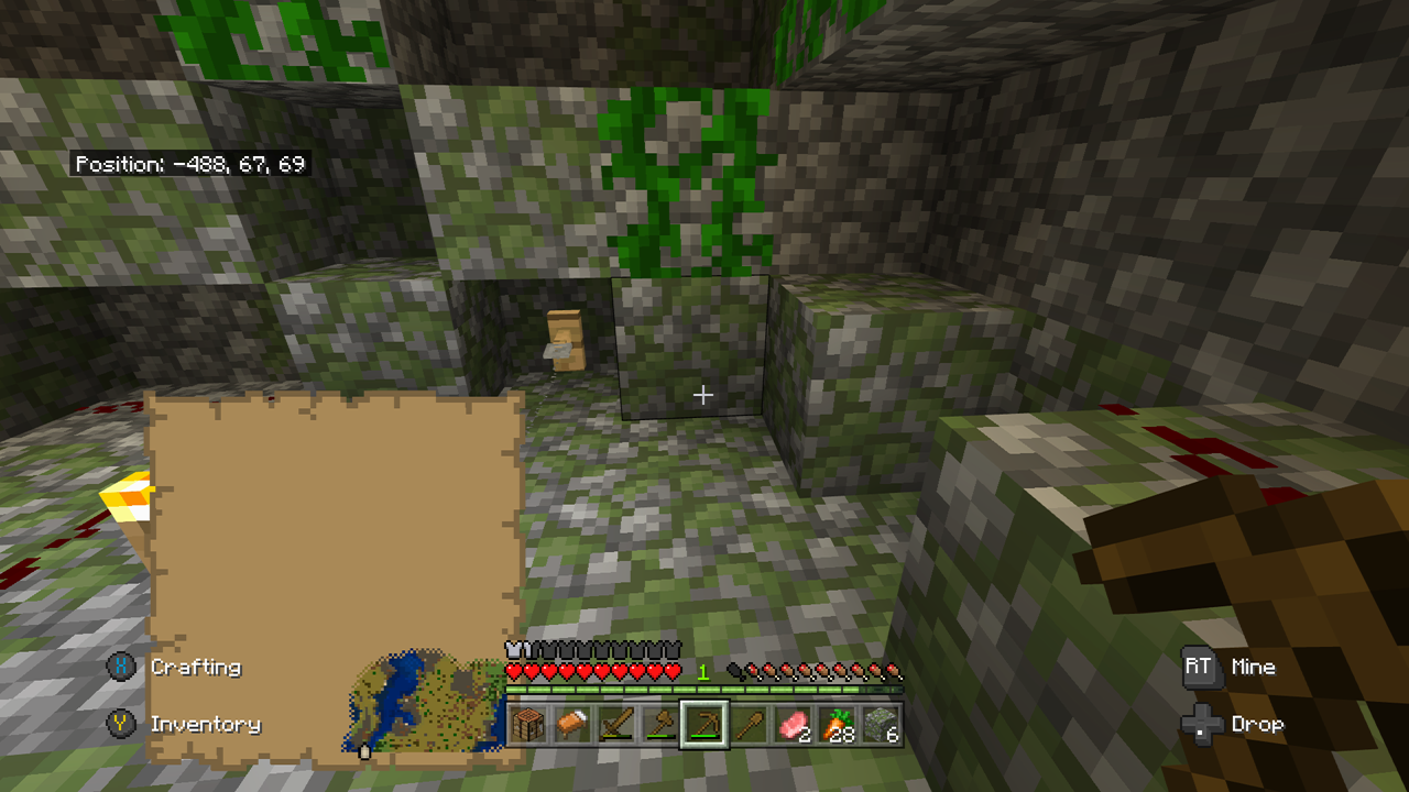 I found a Jungle Temple in a small jungle using Experimental Features and when I went inside, I accidentally set off the tripwire but no arrow came flying at me. I walked over and broke the vine, only to see cobblestone. The chest around the corner was not there and there was no chest in the secret room.