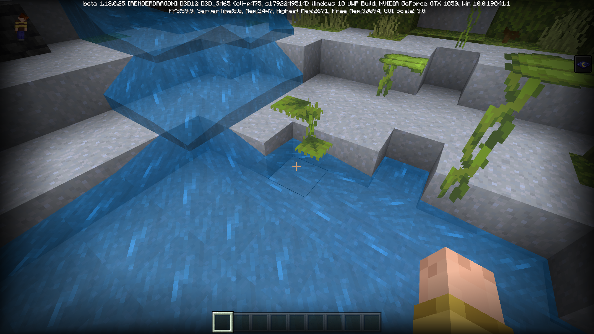 Flowing water/lava can partially replace plants in lush caves. In this case, the plant (often Big Dripleaf and Small Dripleaf) will stand on the flowing water/lava, and will not break.