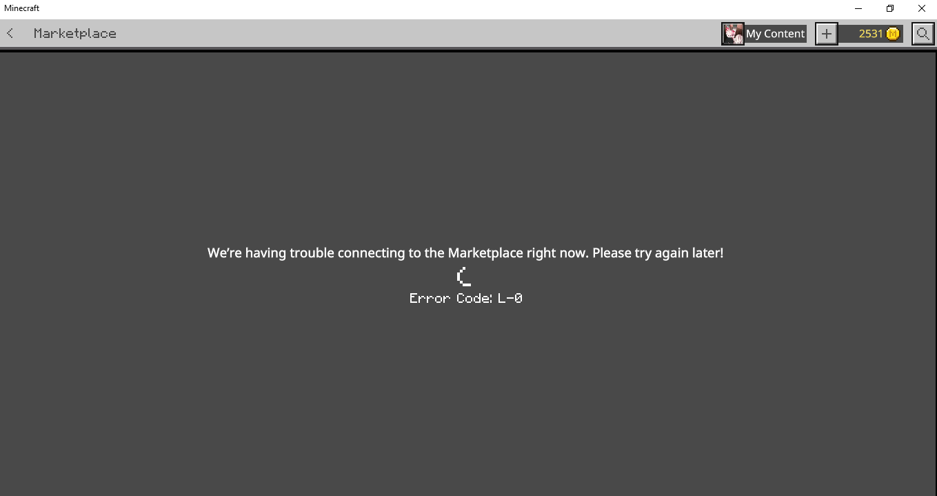 Whenever I tried to open the marketplace, or even change my skin, It wouldn't load and it would give me errors such as L-0 and many others saying it wasn't connecting. Its affecting my when I go into servers, the marketplace screen at the main menu, and it won't let me see the packs and content that I have bought from the marketplace to make a world. Sometimes it would say Minecraft Bedrock needs an update and can't access the marketplace without it. However, I check almost everyday and there is no update I can see. I have tried restarting my pc, this all started after I reset it a few days ago, somewhere around Monday afternoon. I don't have any screenshots, so I hope this is enough information of the issue. My friend who plays on the PlayStation, does not have this issue at all.