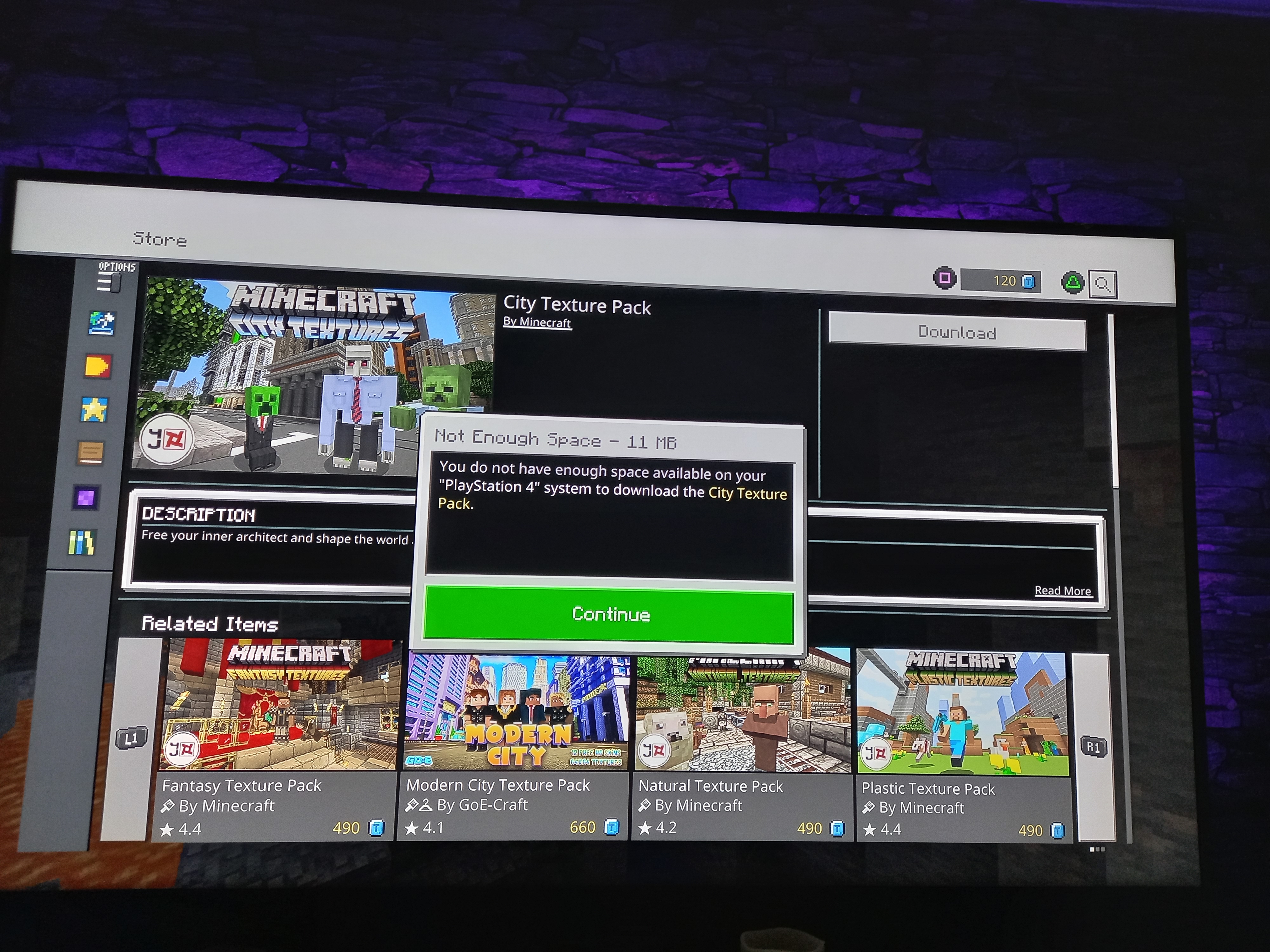 So I have plenty of space yet it won't let me download a texture pack, I have deleted worlds, deleted minecraft saved data plus uninstalled and reinstalling the game which then I started downloading all the stuff that bought mashup and texture packs only it wasn't letting me download all came up not enough space to download 11mb when I have plenty of space worlds I already had downloaded I can't download them due to the message not enough space, I seen other day that someone on xbox has had this same issue. I put a report in other day also and its saying resolved when it clearly isn't as I still can't download anything can't buy textures because of this can't do anything.