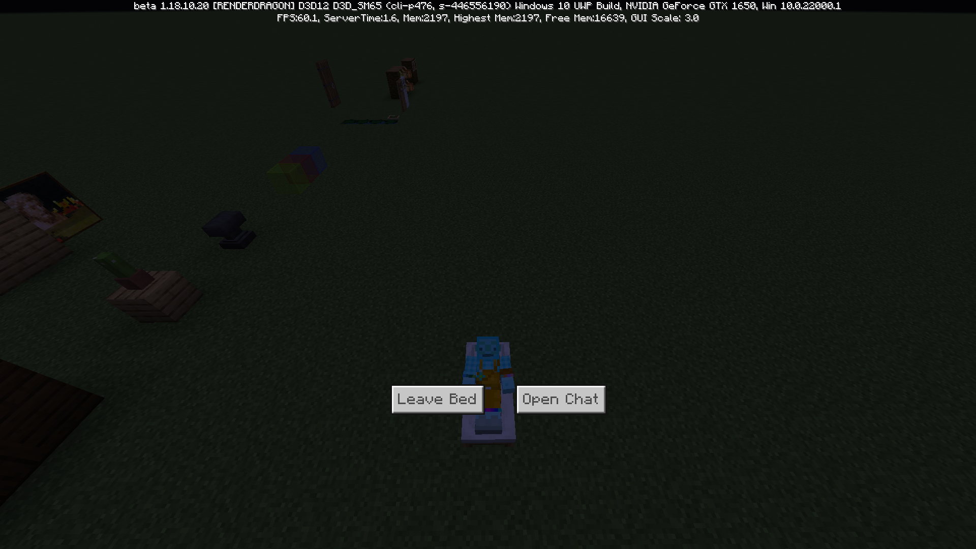 The third person perspective is in an odd position above the player is sleeping: