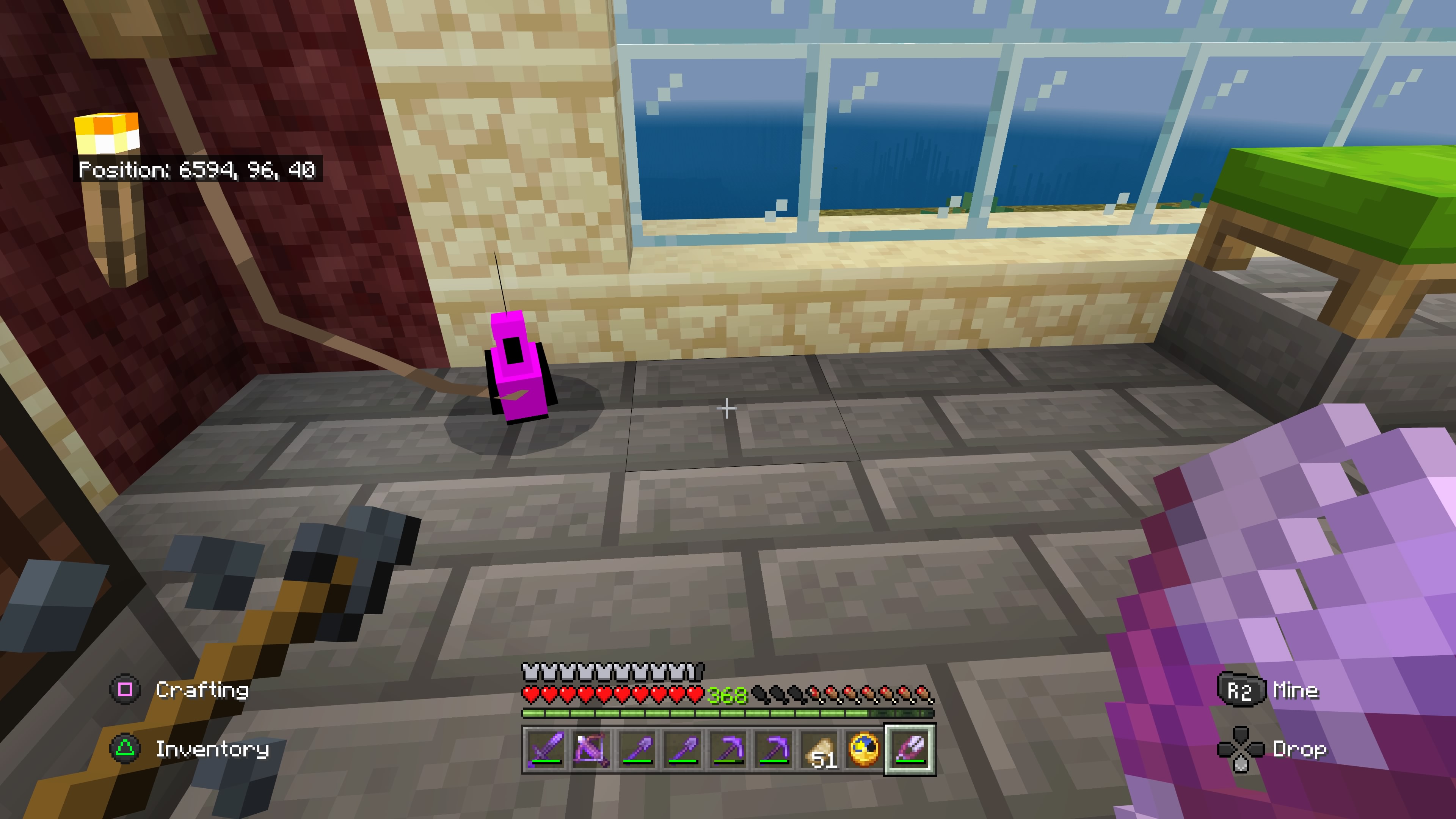 オーバーワールドをエリトラを使って飛んで行き、メサ側からポータルに入ったところ、正常に出入りできましたが、PS4を再起動させたところ問題が再発し、ついにはセーブデータがロードできなくなりました。