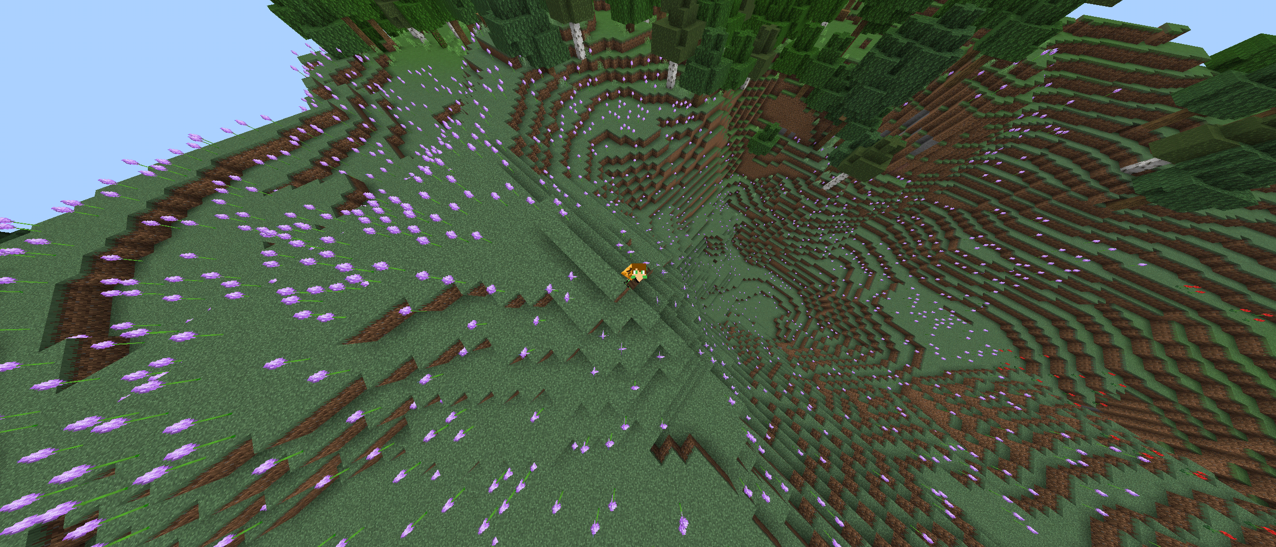 Hello ! So I created a new world and realized there were a lot of flowers generating I'm wondering if it normal or if it is a generation bug? I'm attaching some images with my request to illustrate my sayings.