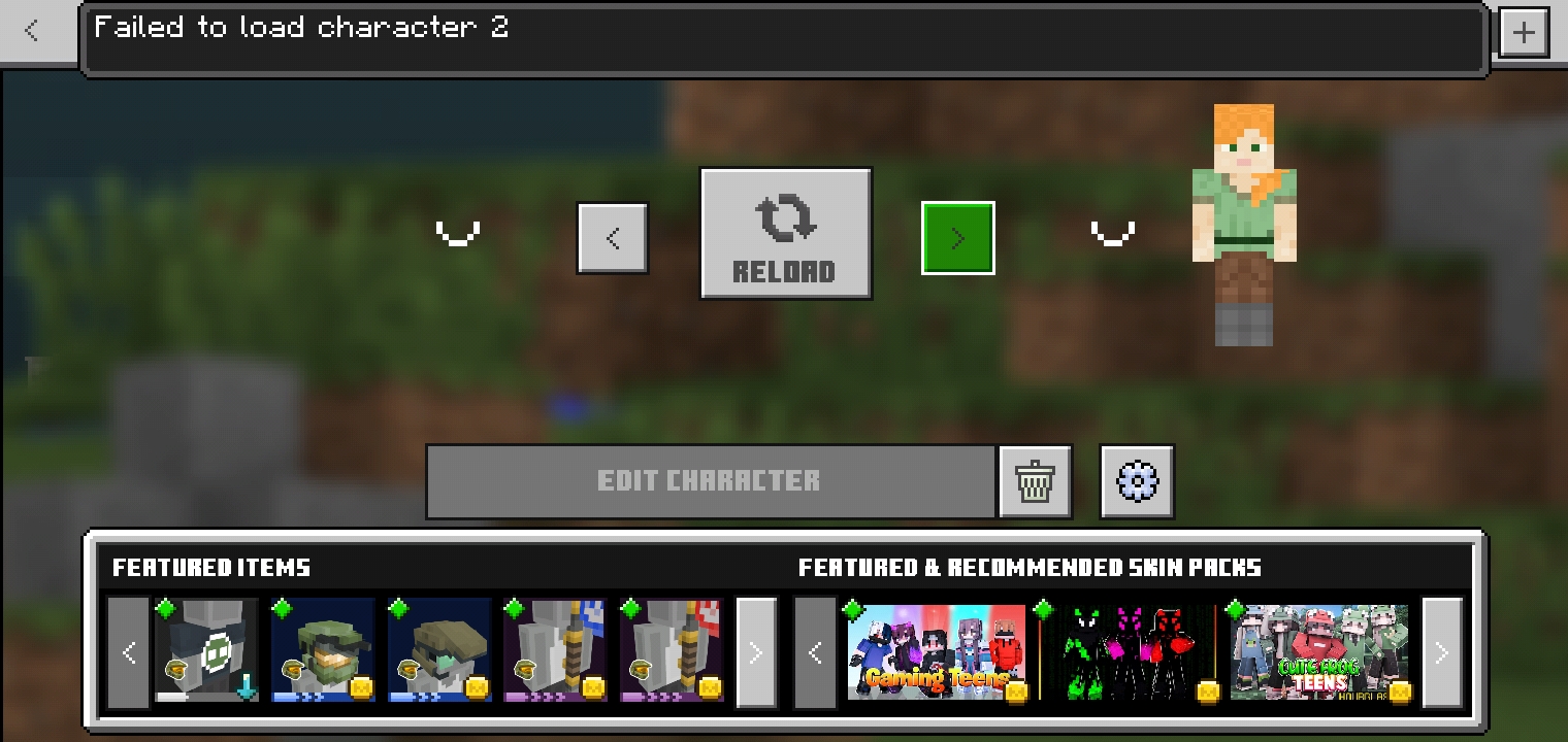 I was trying to import my skin there with my cape, that error or glitch shows "failed to load character skins, instead it shows Alex and Steve skin.