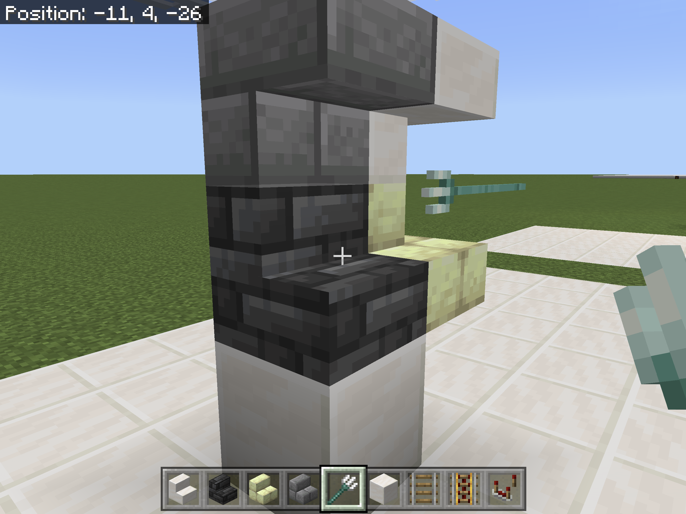 This is kind of hard to describe, but I noticed this bug in my survival world (on my bds) , after building arrow slits for my castle, I then hopped in to a local creative world and replicated the same issue for the screenshots provided below.