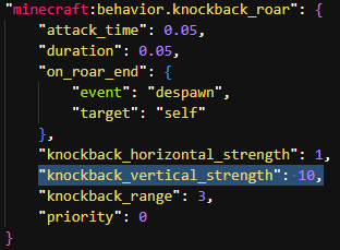 The “vertical_knockback” value of the “minecraft: knockback_roar” component is ignored, and apparently it takes a weak default one.