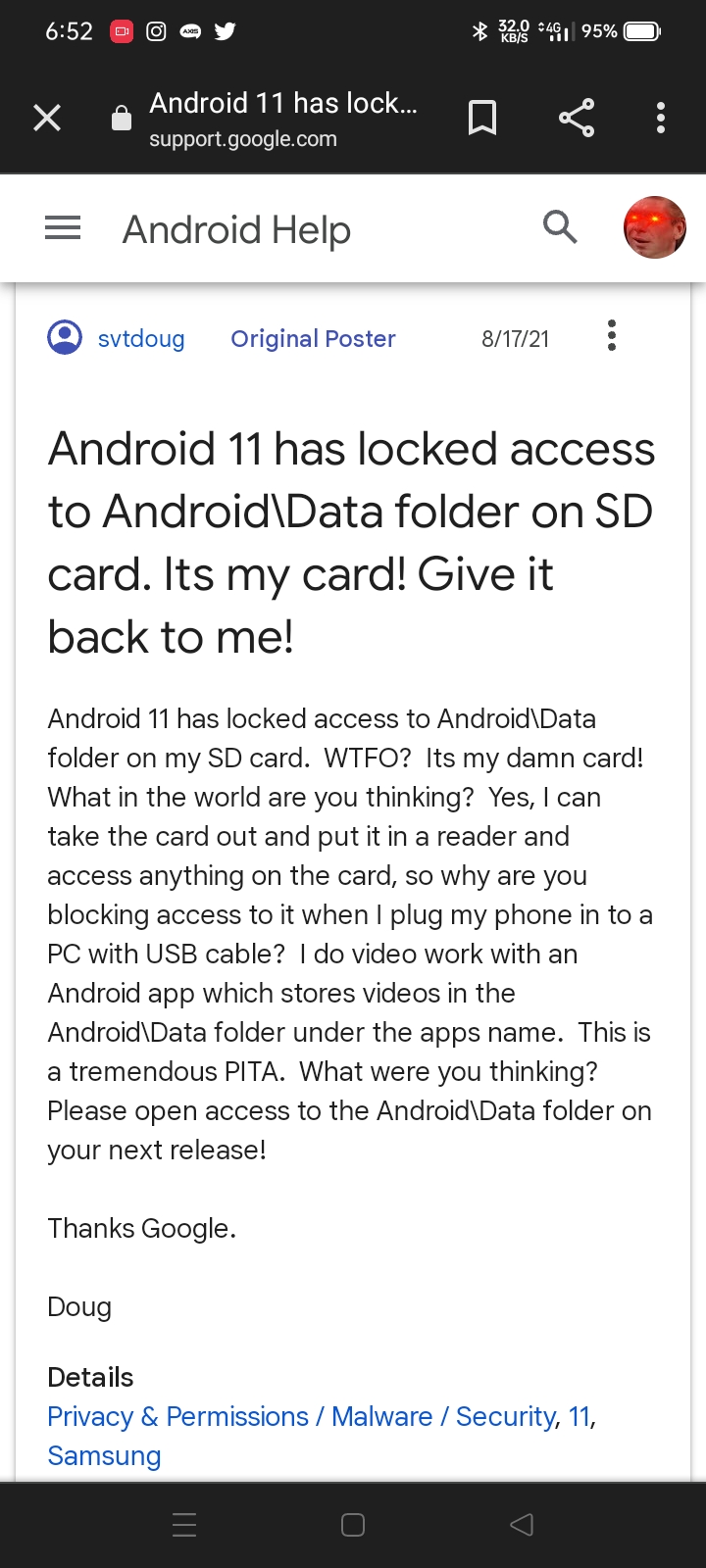 Then I tried to manually unzip and move the folder to "android/data/com.mojang.minecraftpe/files/games/com.mojang/minecraftWolrd" but.... The access to the "android/data" folder was denied...... After doing some research, turned out that android 11, doesn't give you access to "android/data" folder.... The only application that could access it I've known so far is "google file"..... Then I tried to move my worlds folder to the Minecraft's data folder and then google file doesn't let me move my worlds, (even though I could still copy or move some items from the "android/data" folder)............ So I think that is the major problem