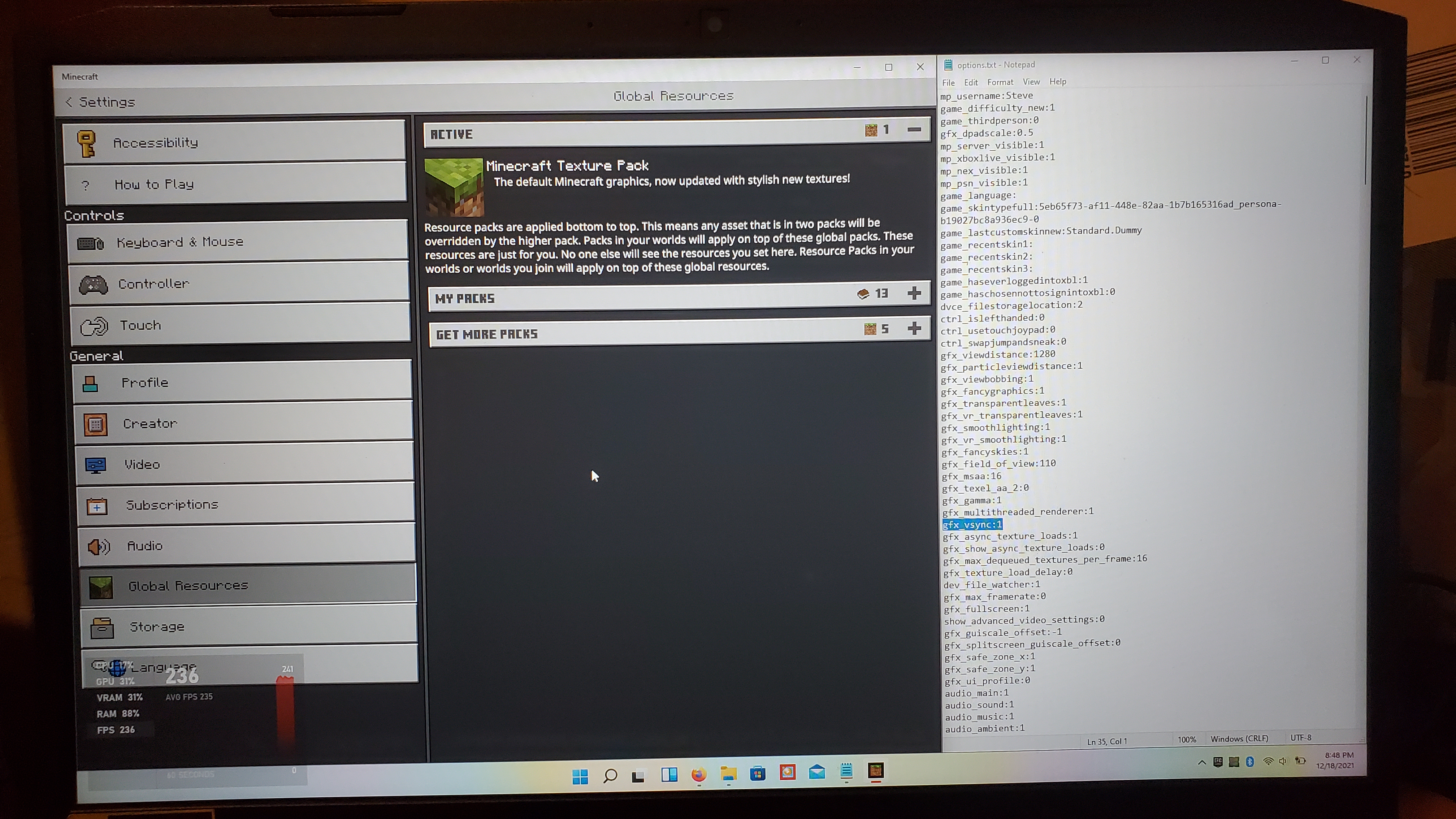 After upgrading to Windows 11, the hidden V-sync toggle in options.txt does not function and is always disabled, regardless of if the option is set to enabled. This results in higher framerates than expected, and can be a bit of frustration for some who prefer each game to have its own V-sync toggle (although I am not one of them).