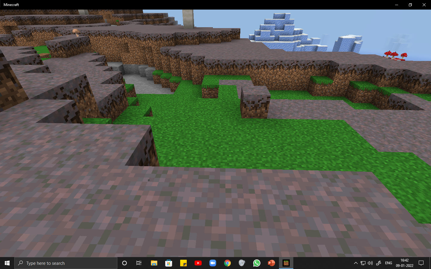 In a Mushroom Fields biome, grass generated when it shouldn't have, as only mycelium and/or dirt is supposed to generate there naturally