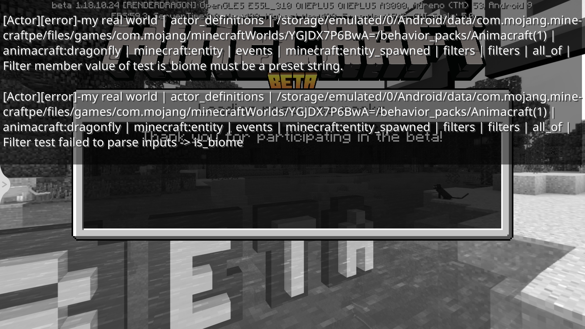 The screenshot shows an outdated version and error messages related to an addon. We can only accept reports for issues that are reproducible in vanilla Minecraft in the current release or beta version.