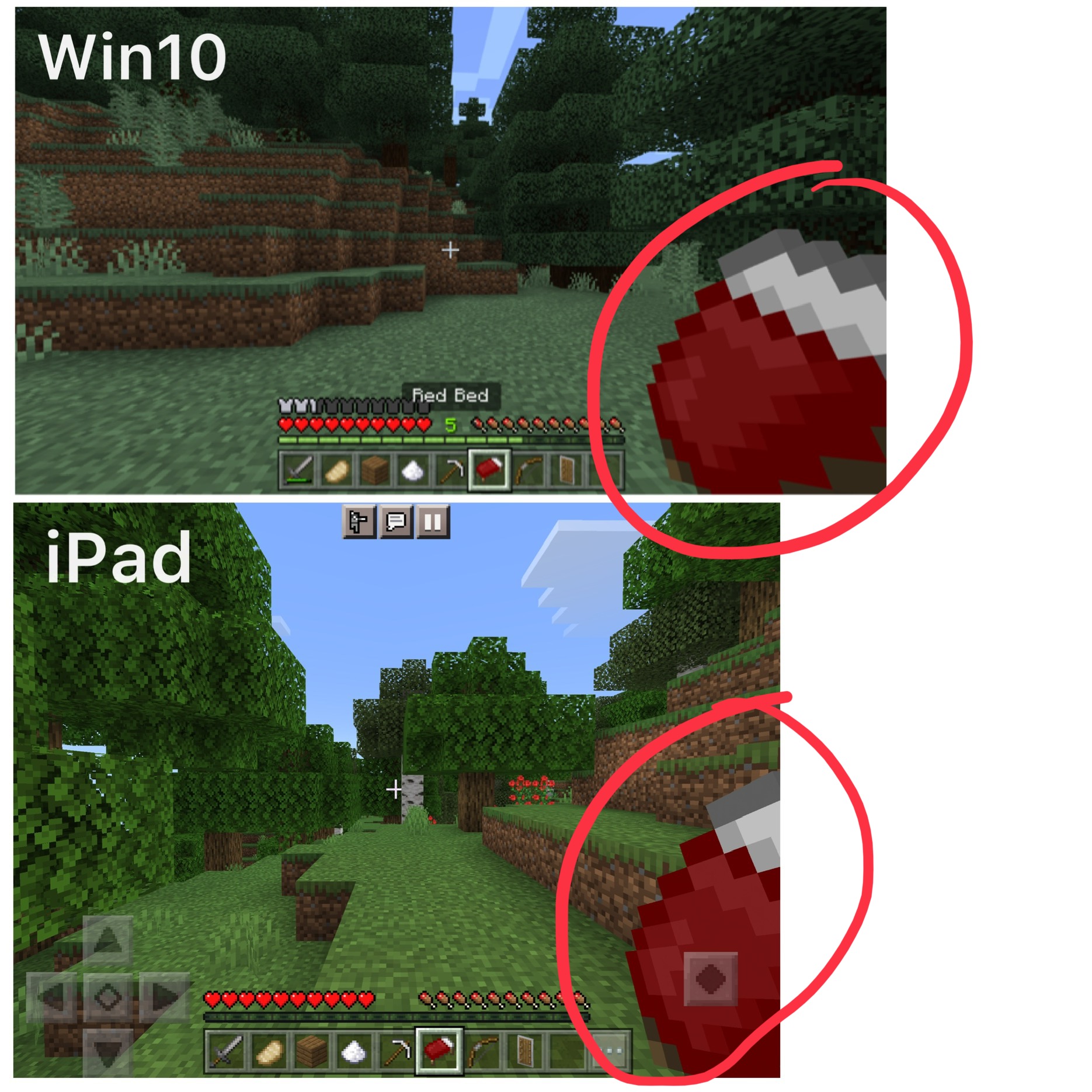 This bug only affects iPads. I have tested this on Windows 10, PS4, Xbox, iPhone, Android, Android Tablets and this bug does not affect any of those devices, (only iPad’s). Changing FOV, Screen Size or GUI Scale does not change anything.