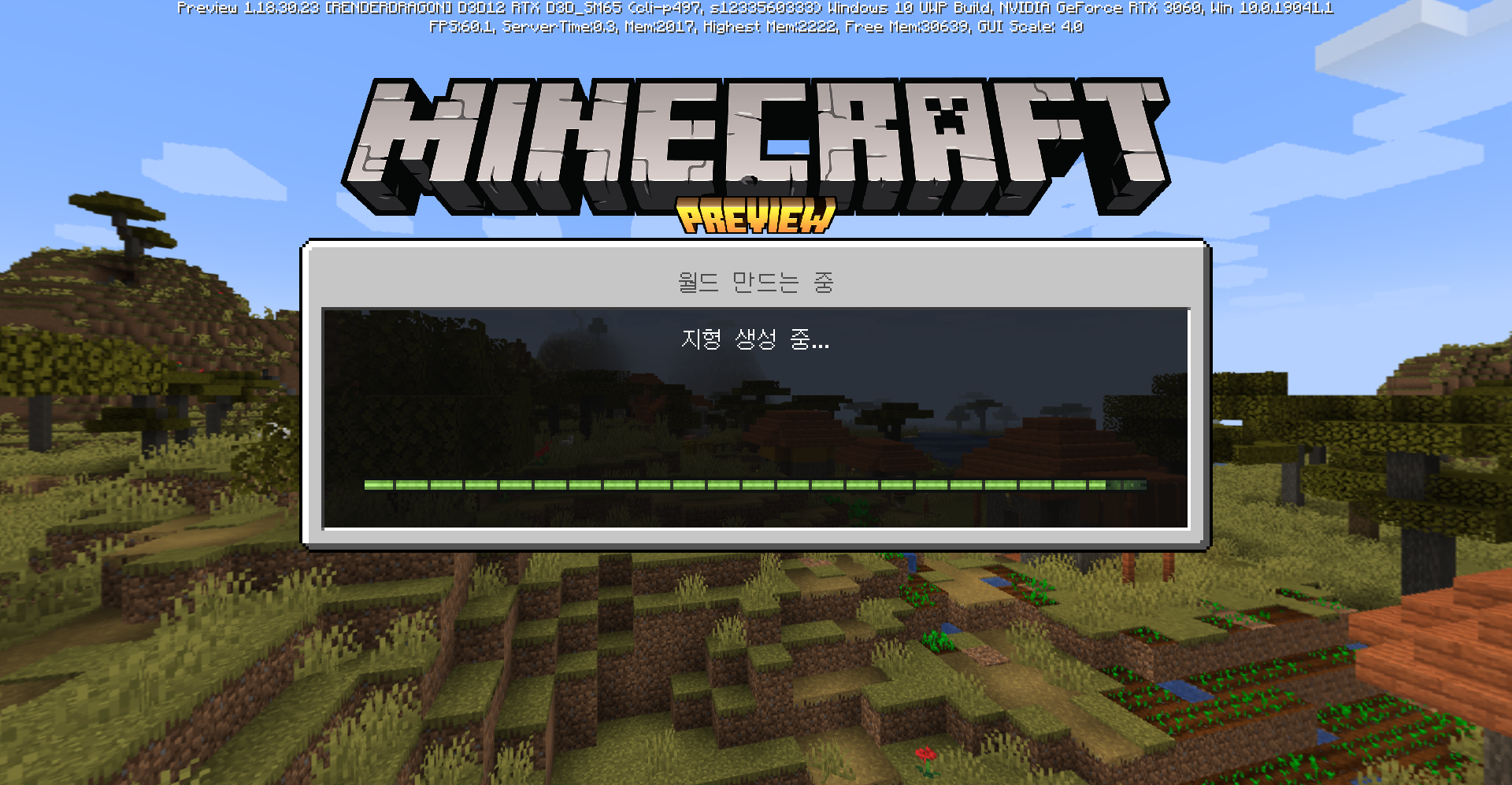 World does not load and freezes at around 95% ("지형 생성 중...") when i equip pack(behavior, resource)