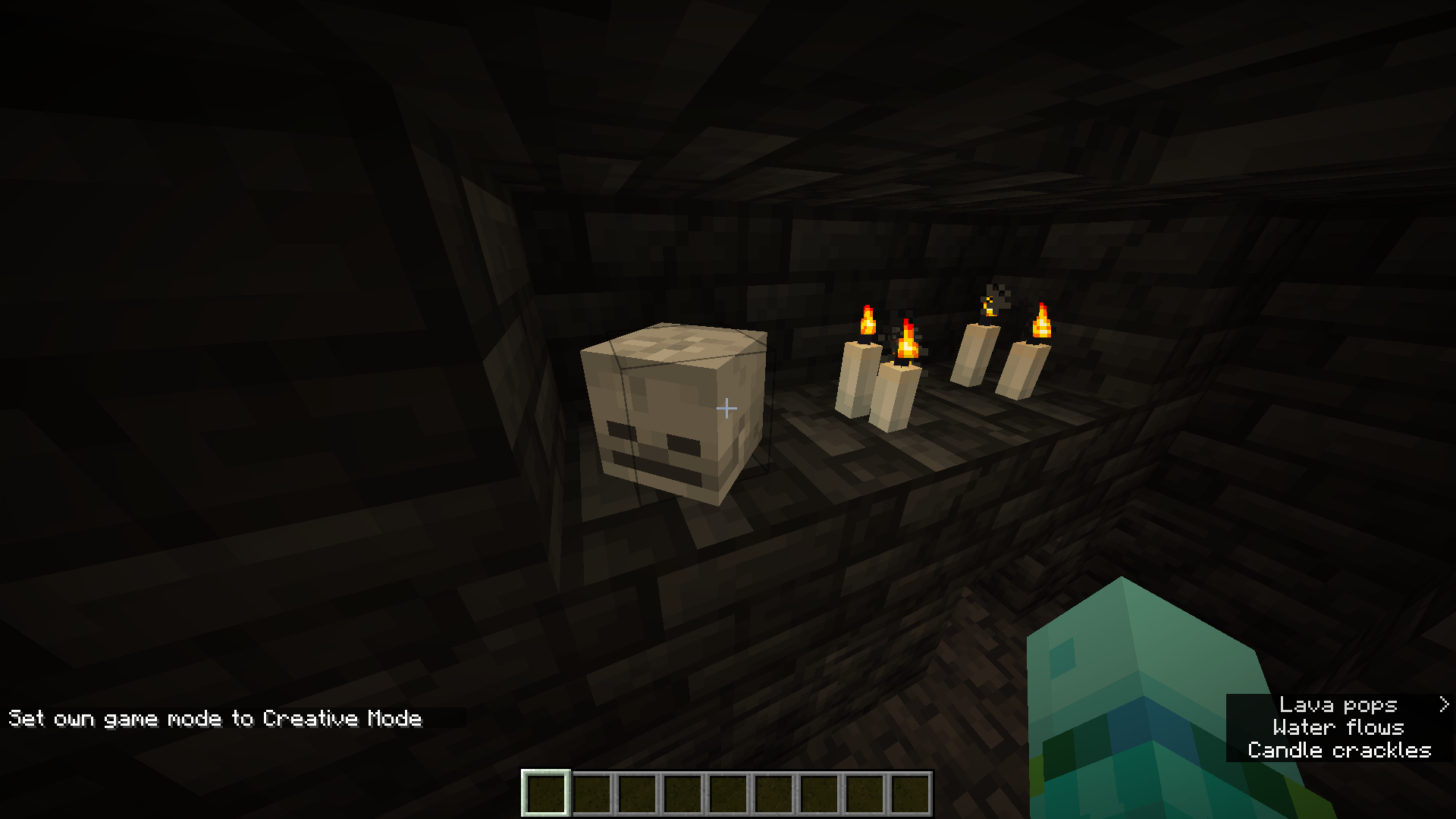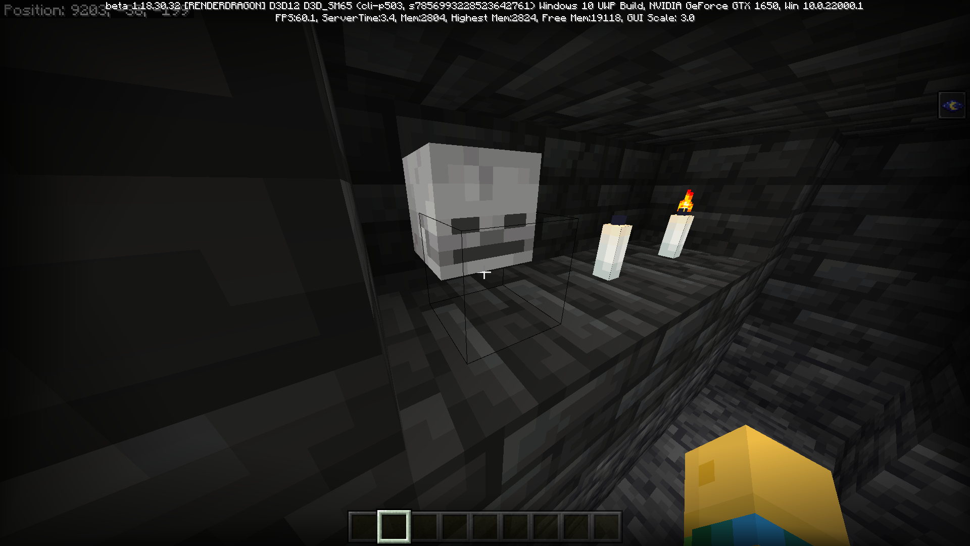 The skeleton head (skull) is generated incorrectly in the ancient cities, the block state visually shows that the head is placed on the wall side, however, the outline tells that it is placed on the top of the block below it.