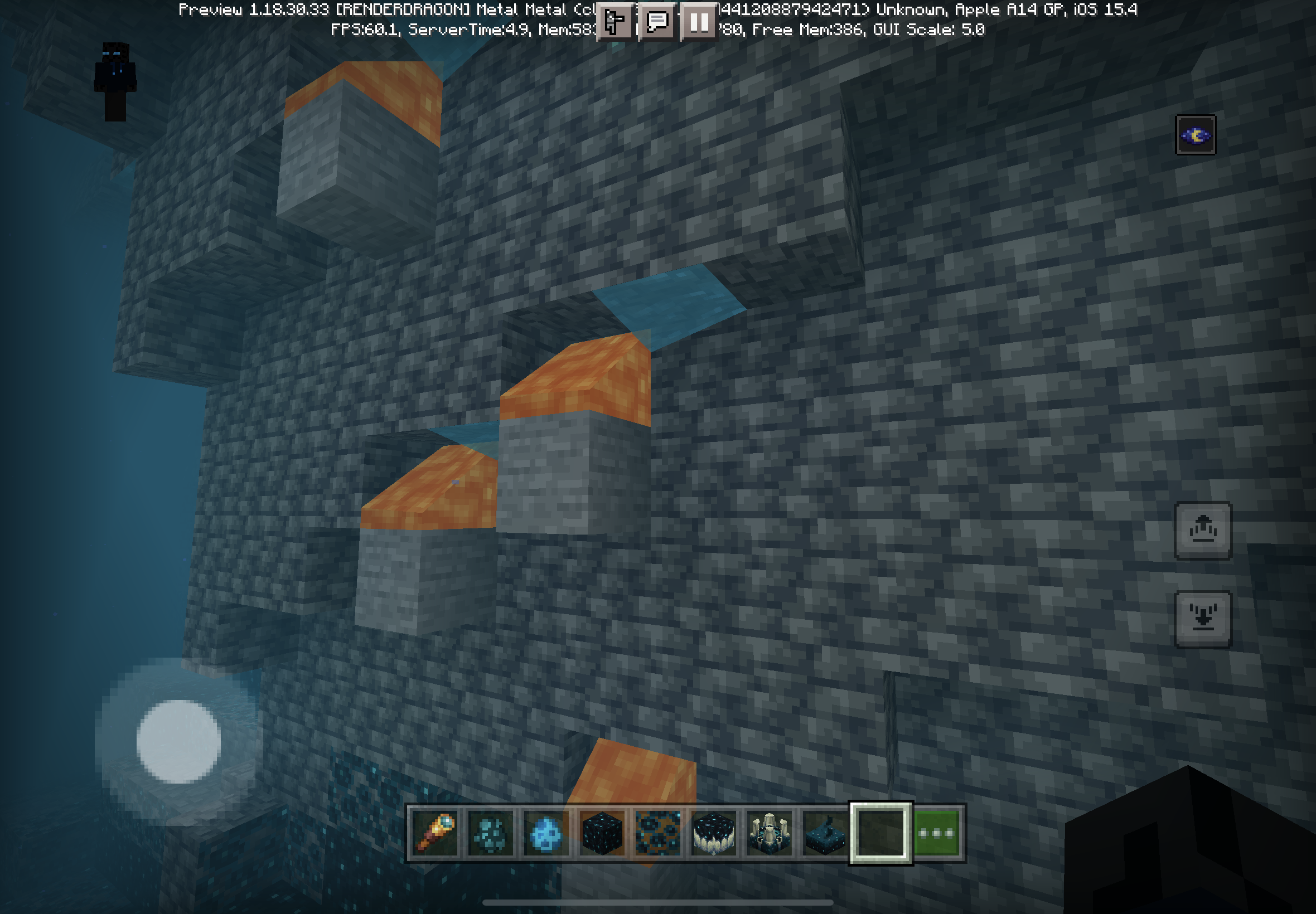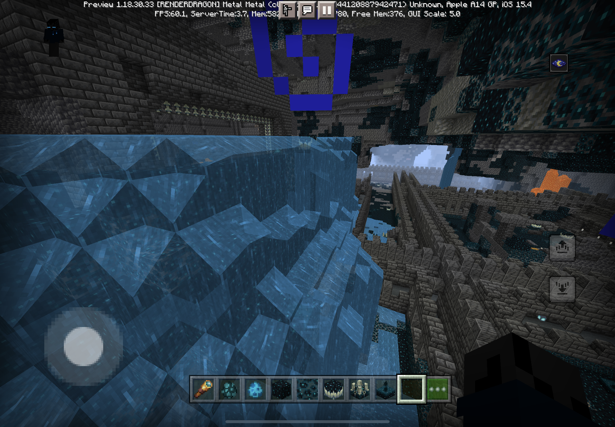 Teleported to an Ancient City generated half waterlogged, starting with a chunk piece known as “Portal” or the big statue that looks like the head of the Warden.