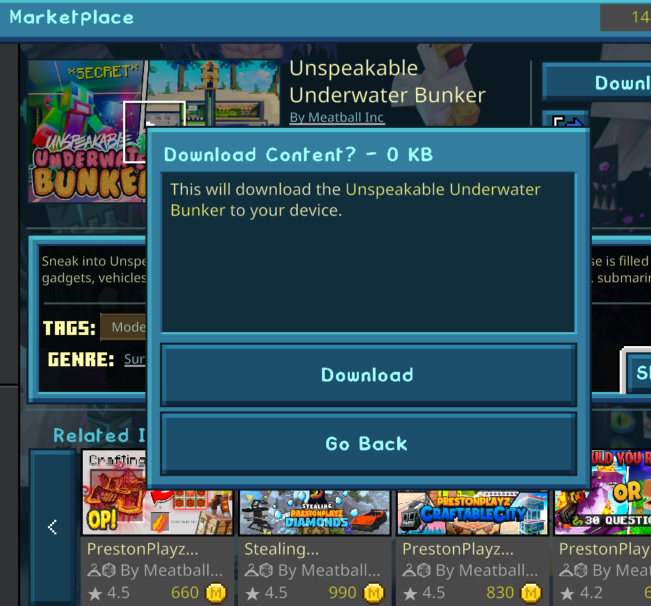 I purchased 2 unspeakable bundles that included skins, world, etc. for my granddaughter, after purchasing them, the download button showed up, when I tap it, the download screen shows up, but says 0kb and nothing happens when tap download. When tried in Minecraft preview, it did show up at 85 or so mb or something and looked like downloaded the game but the world still does nothing when click on it, the skins do work, but she wanted to play the game, too.