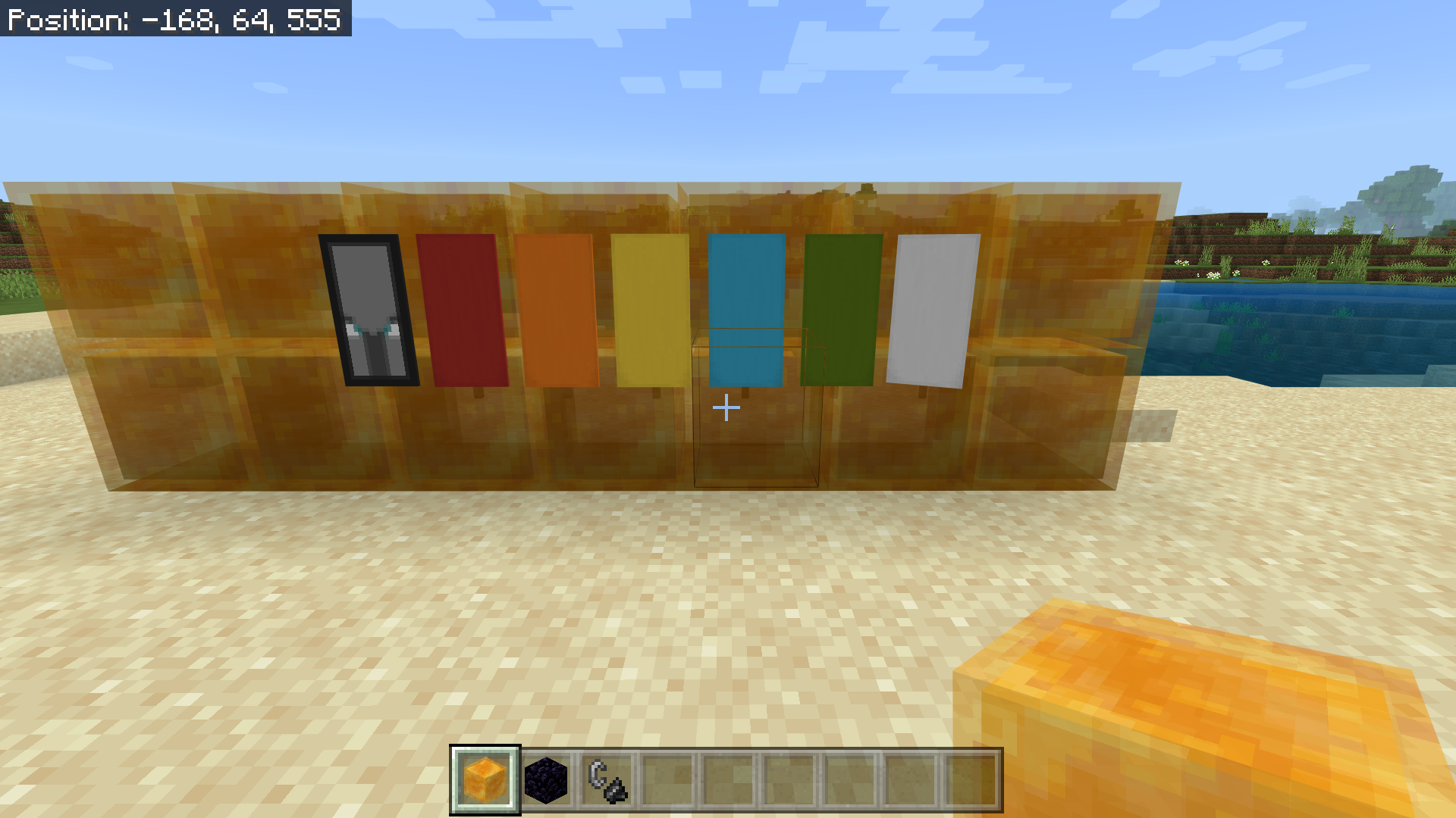 As the banners bug with the nether portal they also bug with the honey block. It looks like the banners are not reflected by the honey blocks. It also looks like the banners are in front of the honey blocks, but in fact they are behind. Please fix it.