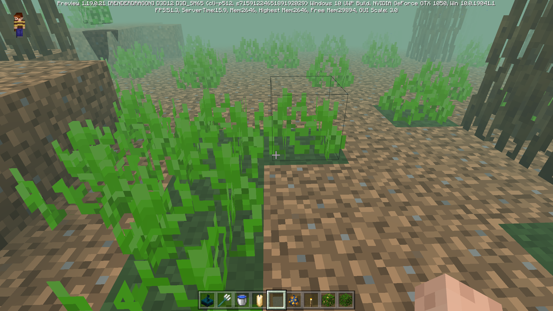 Underwater in the mangrove swamp biome, grass blocks will sometimes generate.