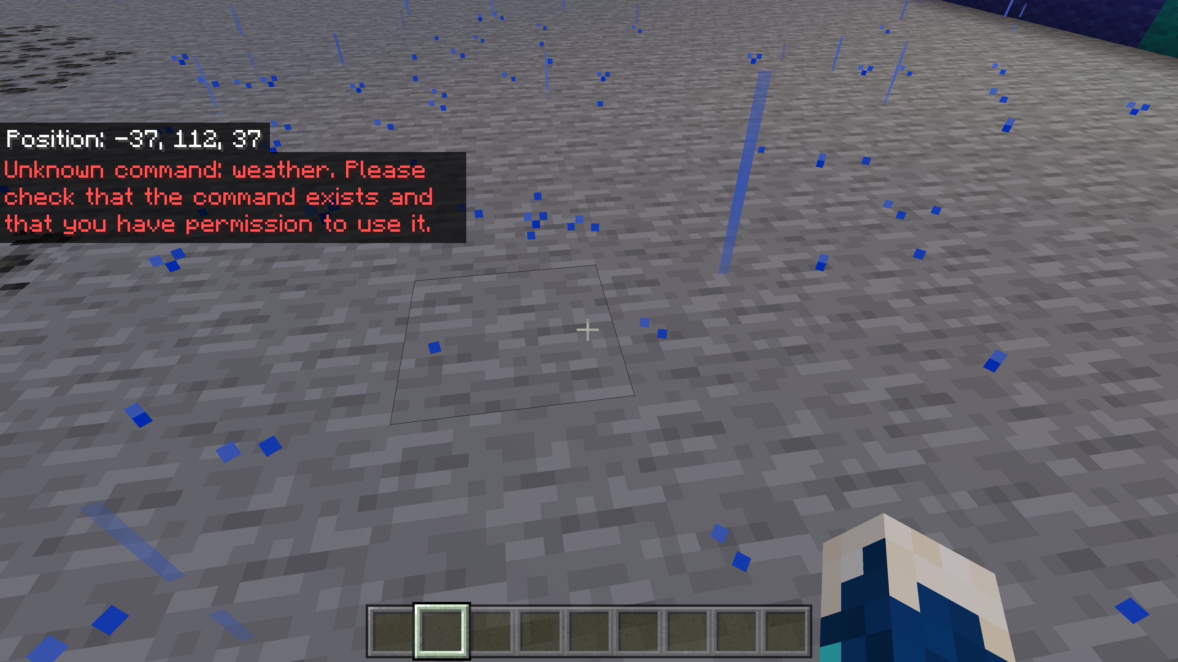Here's a screenshot of the error I get when trying to use commands - here I just tried "weather clear". Like I said, the permissions are all correct.
